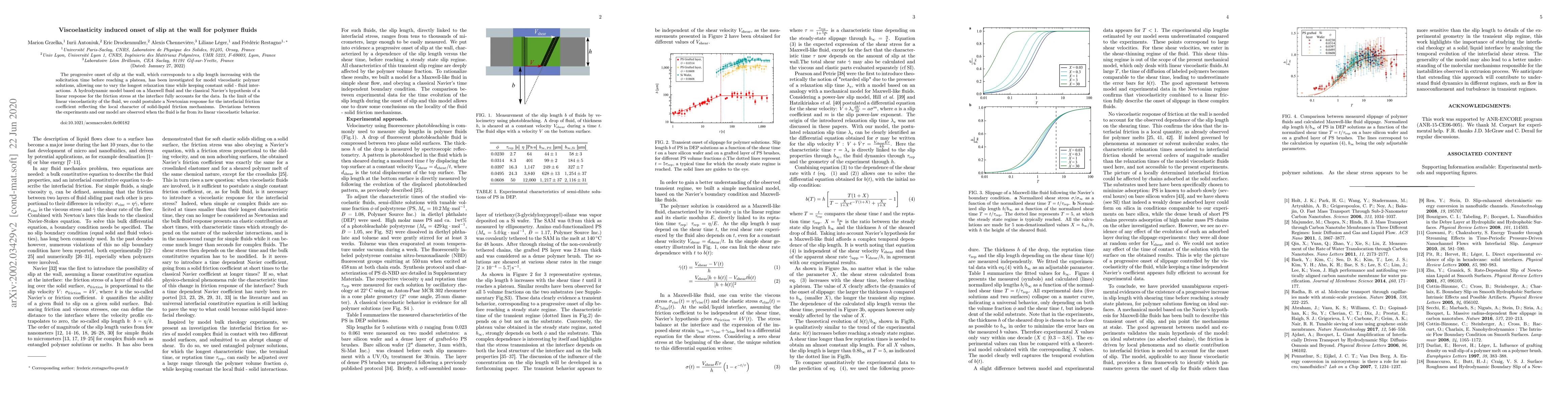 This study investigates the onset of slip at the wall for viscoelastic polymer fluids, revealing that slip length increases with time before stabilizing. A hydrodynamic model based on Maxwell fluid theory accurately describes the observed behavior without adjustable parameters, indicating that the friction stress response is locally determined.