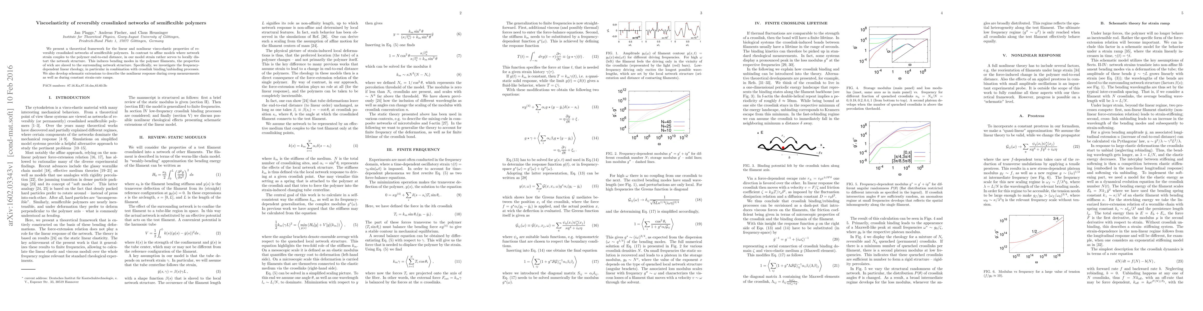 We present a theoretical framework for the linear and nonlinear visco-elastic properties of reversibly crosslinked networks of semiflexible polymers. In contrast to affine models where network strain couples to the polymer end-to-end distance, in our model strain rather serves to locally distort the network structure. This induces bending modes in the polymer filaments, the properties of wich are slaved to the surrounding network structure. Specifically, we investigate the frequency-dependent linear rheology, in particular in combination with crosslink binding/unbinding processes. We also develop schematic extensions to describe the nonlinear response during creep measurements as well as during constant-strainrate ramps.
