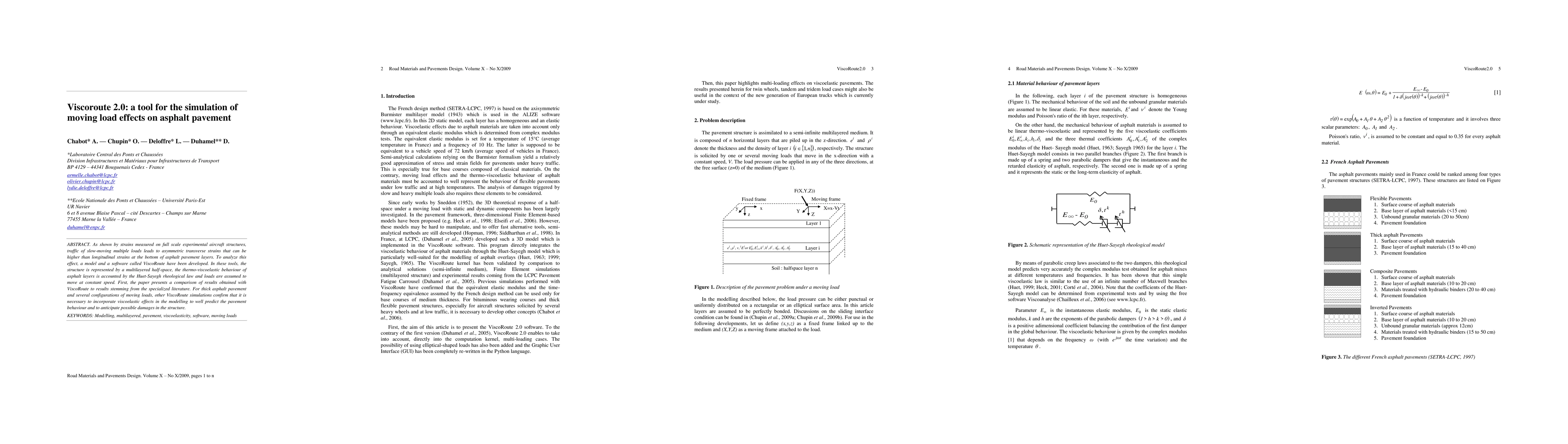 ViscoRoute 2.0 simulates the effects of slow-moving multiple loads on asphalt pavement, showing that asymmetric transverse strains can exceed longitudinal strains. The tool incorporates viscoelastic behavior and compares its results with existing literature, confirming the necessity of viscoelastic modeling for accurate pavement behavior prediction.