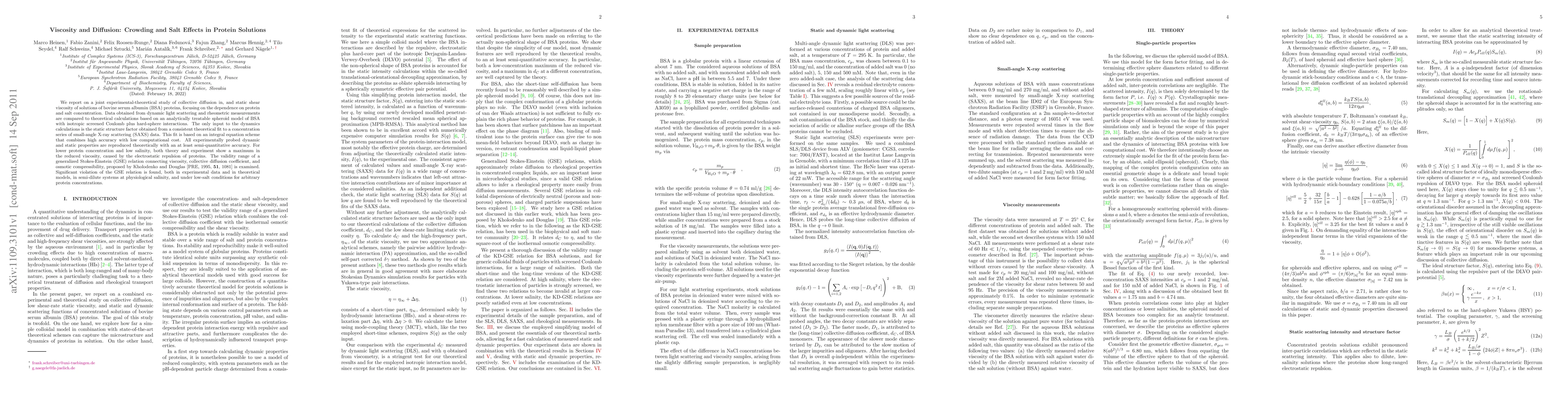 This study combines experimental and theoretical approaches to investigate the viscosity and diffusion in protein solutions, specifically bovine serum albumin (BSA), under varying protein and salt concentrations. The findings reveal significant deviations from a generalized Stokes-Einstein relation in semi-dilute systems, highlighting the complex interplay between protein crowding and salt effects.