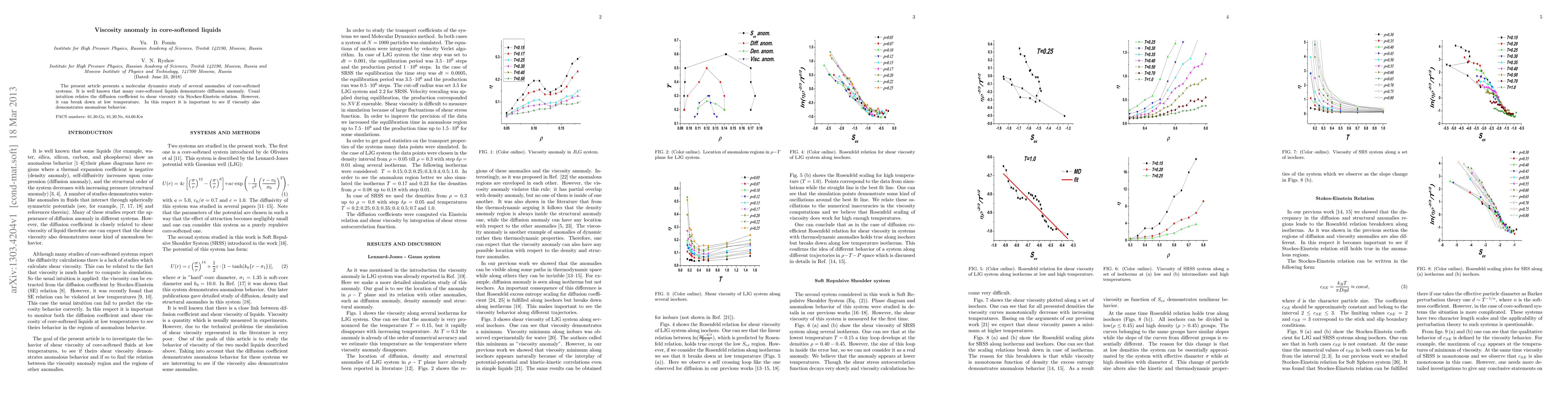 This paper investigates molecular dynamics of core-softened liquids, focusing on anomalies in viscosity and diffusion. It finds that while diffusion anomalies are common, viscosity may also exhibit unusual behavior at low temperatures, challenging the conventional Stokes-Einstein relation.