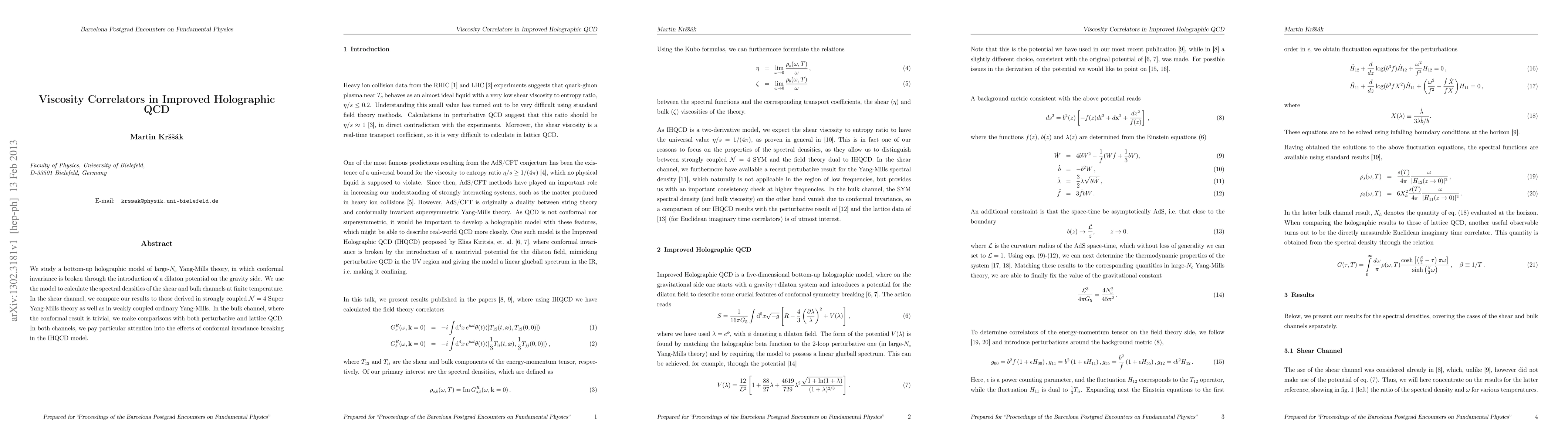 This study explores a holographic model that breaks conformal invariance to calculate spectral densities of shear and bulk channels at finite temperature, comparing results with other QCD models.
