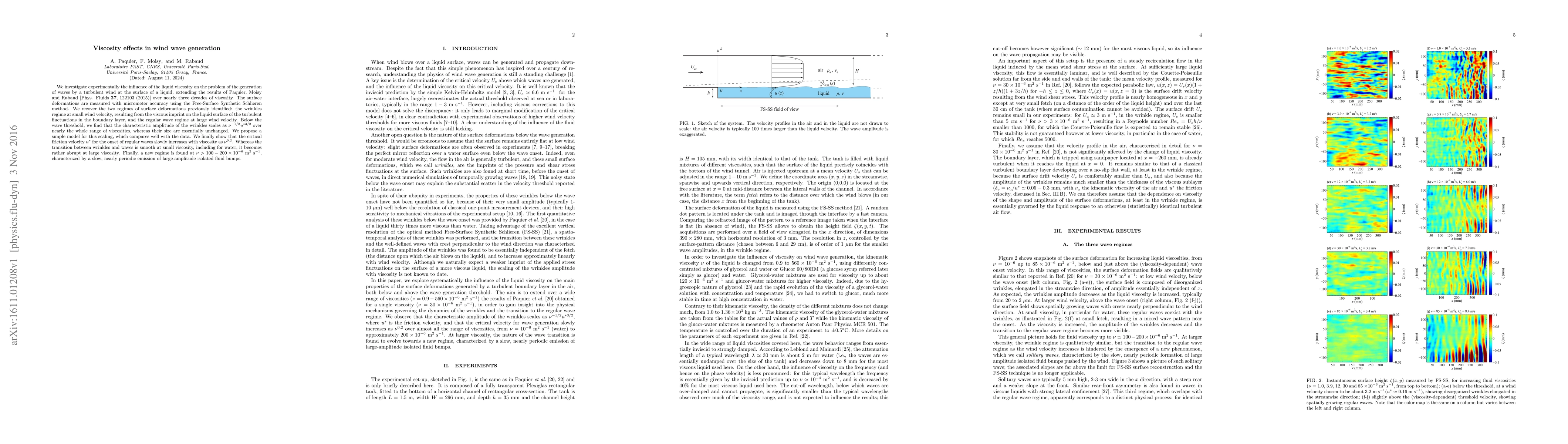This study investigates how wind viscosity affects wave generation on a liquid surface, finding that higher viscosities lead to a smoother transition between small-scale wrinkles and large waves, while also revealing a new regime of isolated fluid bumps at high viscosities.