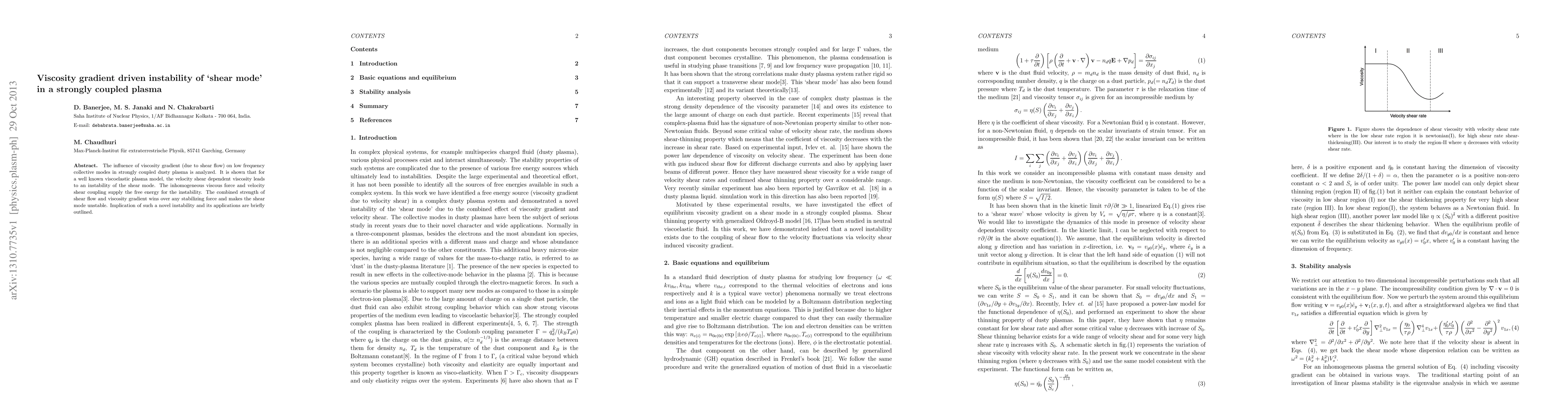 This study investigates how a viscosity gradient caused by shear flow impacts low-frequency collective modes in strongly coupled dusty plasma, revealing that it induces instability in the shear mode. The instability arises from the coupling of inhomogeneous viscous forces and velocity shear, overcoming any stabilizing forces.