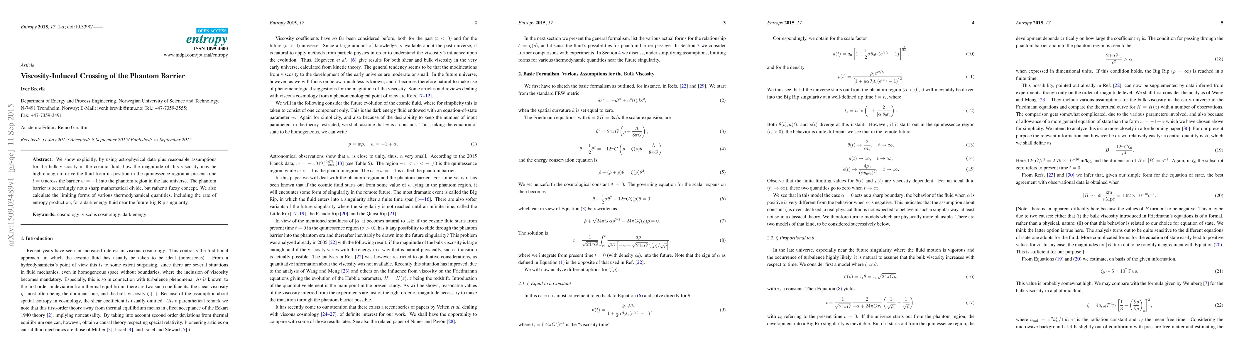 We show explicitly, by using astrophysical data plus reasonable assumptions for the bulk viscosity in the cosmic fluid, how the magnitude of this viscosity may be high enough to drive the fluid from its position in the quintessence region at present time $t=0$ across the barrier $w=-1$ into the phantom region in the late universe. The phantom barrier is accordingly not a sharp mathematical divide, but rather a fuzzy concept. We also calculate the limiting forms of various thermodynamical quantities, including the rate of entropy production, for a dark energy fluid near the future Big Rip singularity.