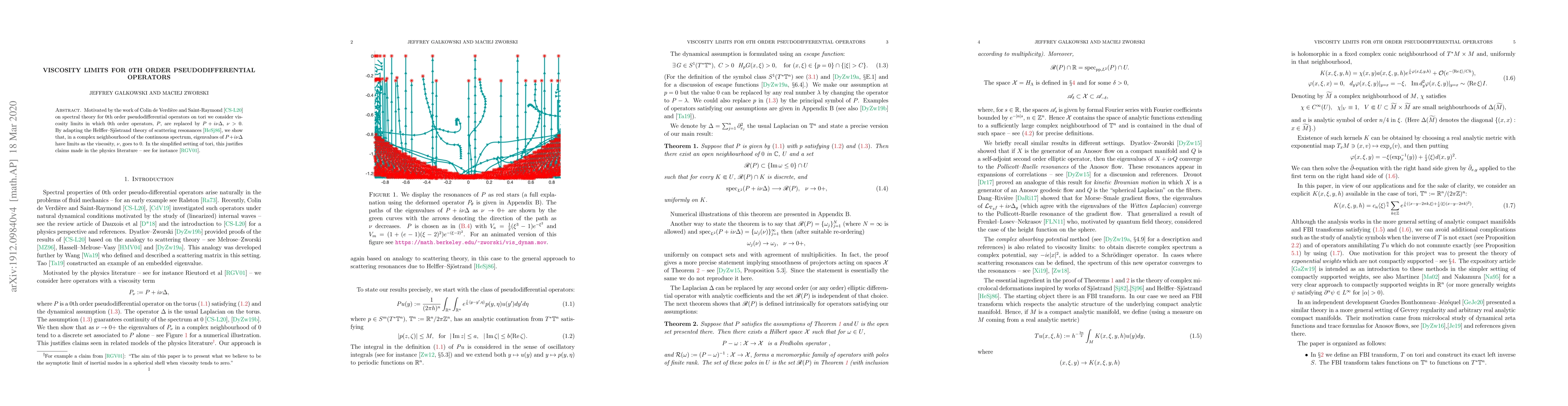 Motivated by the work of Colin de Verdi\`ere and Saint-Raymond on spectral theory 0th order pseudodifferential operators on tori we consider viscosity limits in which 0th order operators $ P $ are replaced by $ P + i \nu \Delta $, $ \nu > 0 $. By adapting the Helffer--Sj\"ostrand theory of scattering resonances we show that in a complex neighbourhood of the continuous spectrum eigenvalues of $ P + i \nu \Delta $ have limits as viscosity $ \nu $ goes to 0. In the simplified setting of tori this justifies claims made in the physics literature.