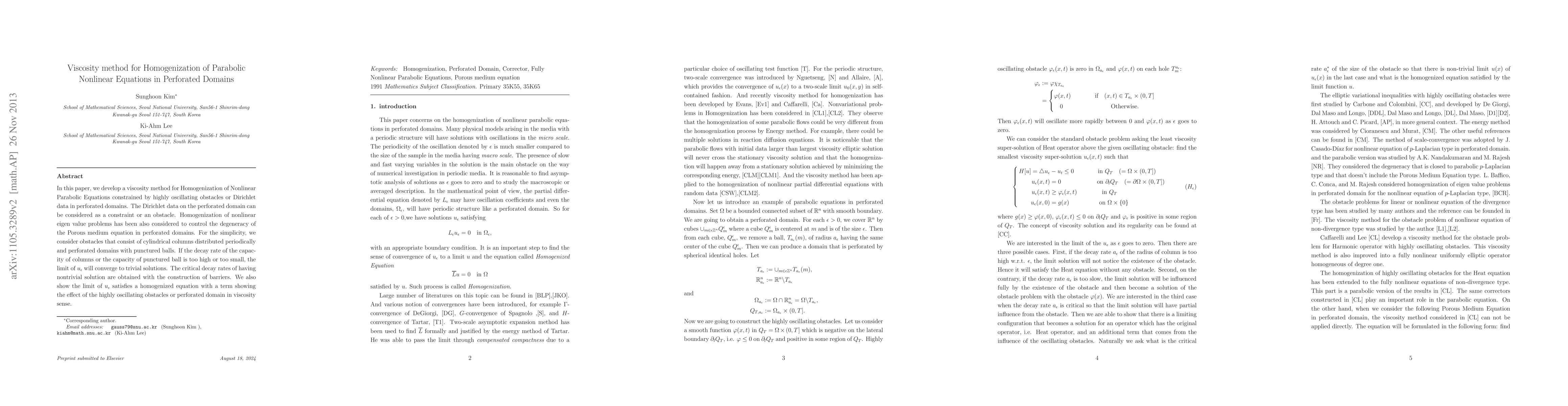 This paper develops a viscosity method for homogenizing nonlinear parabolic equations in perforated domains with oscillating obstacles. The study identifies critical decay rates for nontrivial solutions and shows that the limit of the solutions satisfies a homogenized equation reflecting the effect of the oscillating obstacles.