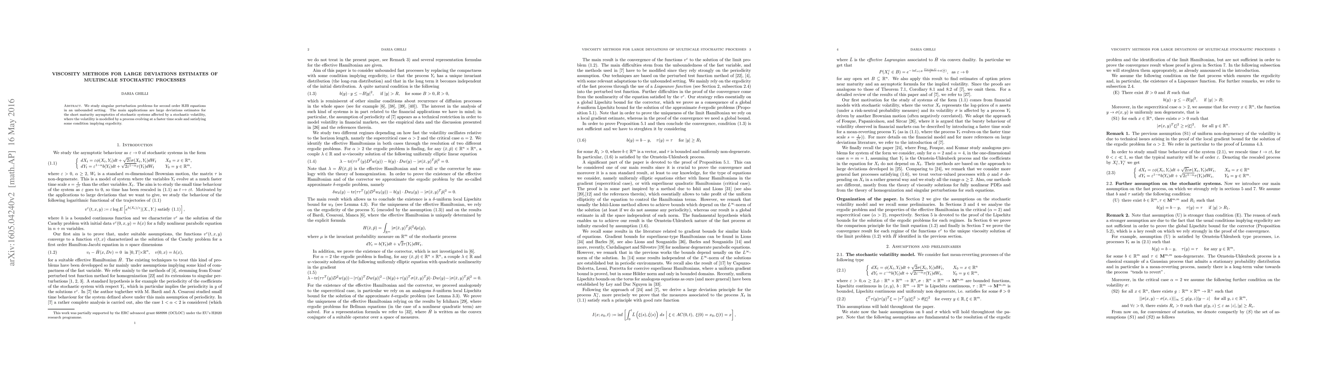 We study singular perturbation problems for second order HJB equations in an unbounded setting. The main applications are large deviations estimates for the short maturity asymptotics of stochastic systems affected by a stochastic volatility, where the volatility is modelled by a process evolving at a faster time scale and satisfying some condition implying ergodicity.