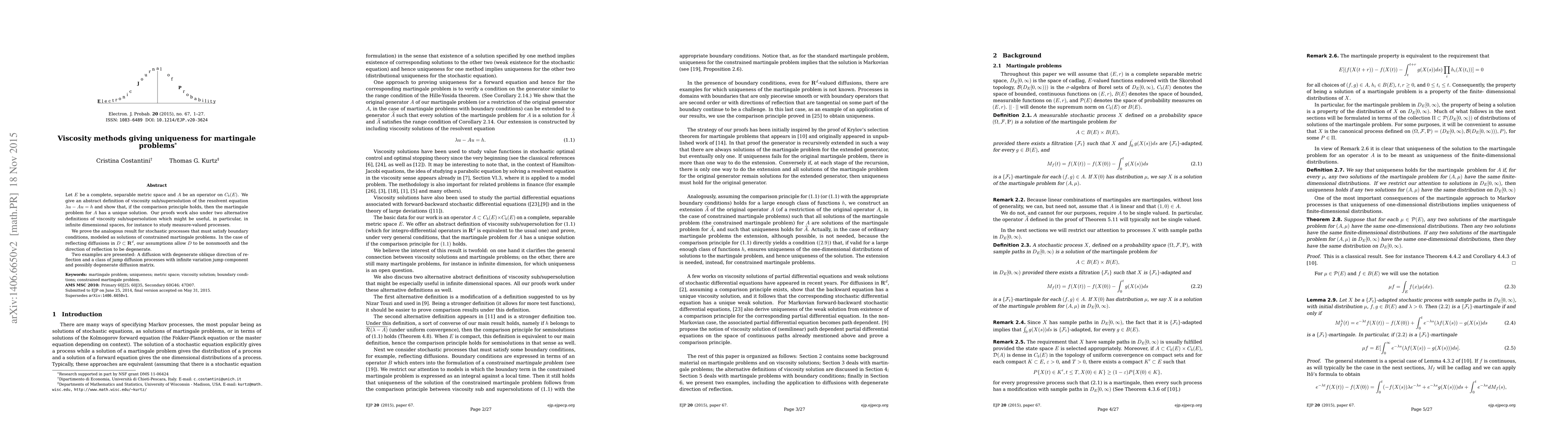 Let $E$ be a complete, separable metric space and $A$ be an operator on $C_b(E)$. We give an abstract definition of viscosity sub/supersolution of the resolvent equation $\lambda u-Au=h$ and show that, if the comparison principle holds, then the martingale problem for $A$ has a unique solution. Our proofs work also under two alternative definitions of viscosity sub/supersolution which might be useful, in particular, in infinite dimensional spaces, for instance to study measure-valued processes. We prove the analogous result for stochastic processes that must satisfy boundary conditions, modeled as solutions of constrained martingale problems. In the case of reflecting diffusions in $D\subset {\bf R}^d$, our assumptions allow $ D$ to be nonsmooth and the direction of reflection to be degenerate. Two examples are presented: A diffusion with degenerate oblique direction of reflection and a class of jump diffusion processes with infinite variation jump component and possibly degenerate diffusion matrix.