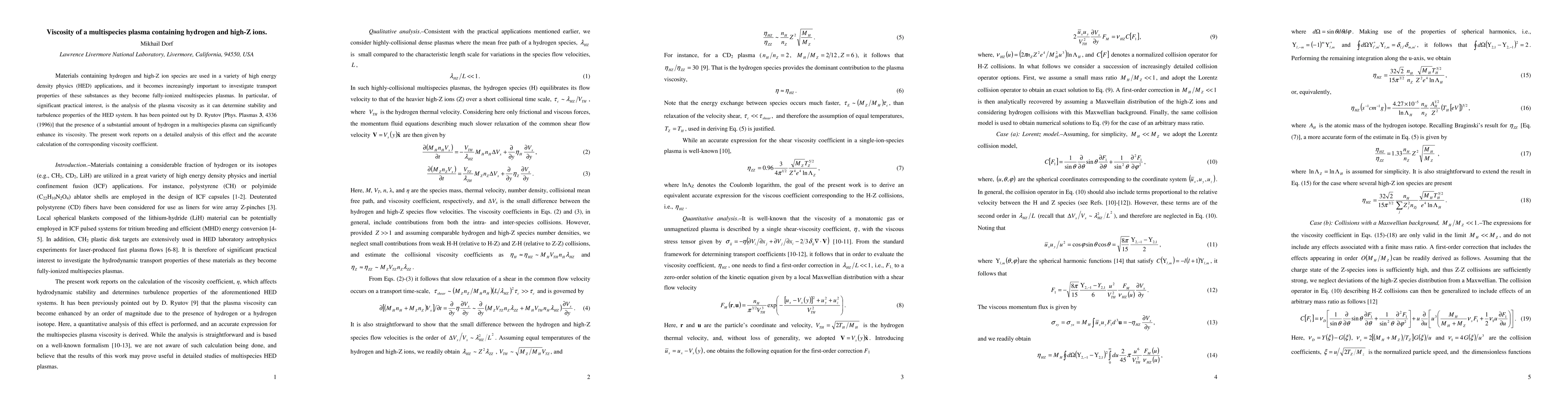 Materials containing hydrogen and high-Z ion species are used in a variety of high energy density physics (HED) applications, and it becomes increasingly important to investigate transport properties of these substances as they become fully-ionized multispecies plasmas. In particular, of significant practical interest, is the analysis of the plasma viscosity as it can determine stability and turbulence properties of the HED system. It has been pointed out by D. Ryutov [Phys. Plasmas 3, 4336 (1996)] that the presence of a substantial amount of hydrogen in a multispecies plasma can significantly enhance its viscosity. The present work reports on a detailed analysis of this effect and the accurate calculation of the corresponding viscosity coefficient.