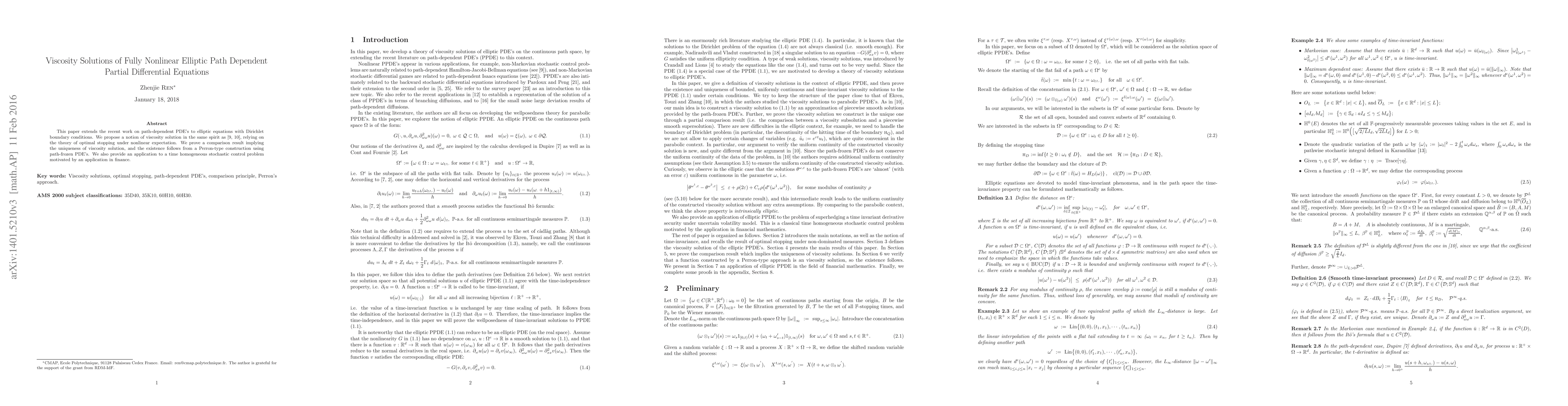 This paper establishes a solution space for uniformly elliptic fully nonlinear path dependent PDEs, ensuring wellposedness under Lipschitz assumptions and a local freezing condition on a related PDE.