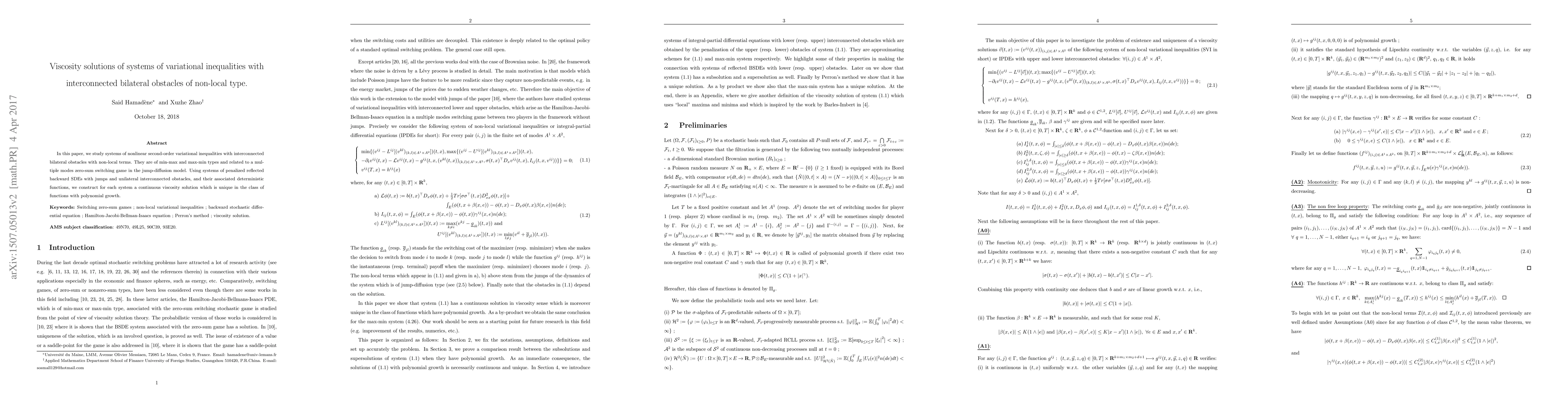 This paper investigates systems of nonlinear second-order variational inequalities with interconnected bilateral obstacles and non-local terms. It constructs unique continuous viscosity solutions using penalized reflected backward SDEs with jumps and associated deterministic functions, relevant to a multiple modes zero-sum switching game in a jump-diffusion model.