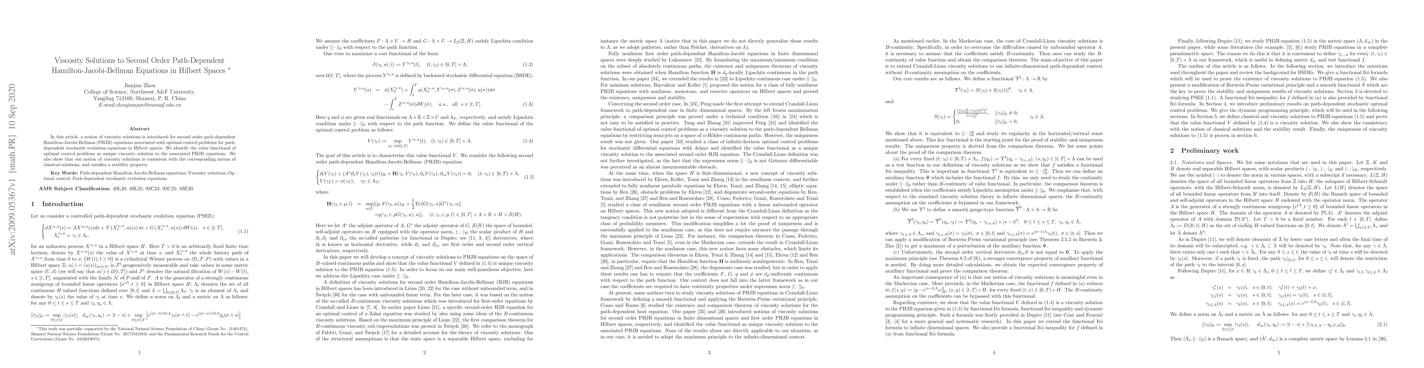 This paper introduces a concept of viscosity solutions for second-order path-dependent Hamilton-Jacobi-Bellman equations in Hilbert spaces, proving that the value functional of optimal control problems uniquely satisfies these equations. It also demonstrates consistency with classical solutions and stability properties.