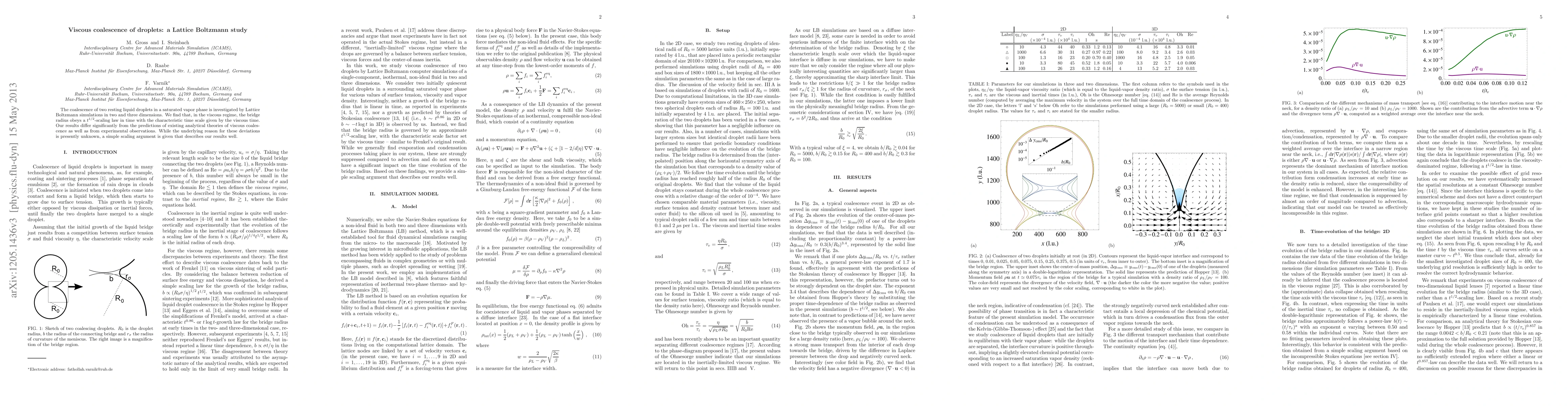 This study uses Lattice Boltzmann simulations to investigate the viscous coalescence of liquid droplets, finding a t^{1/2}-scaling law for the bridge radius that contrasts with existing theories and experimental data. The reason for these discrepancies remains unclear, but a proposed scaling argument aligns well with the simulation results.