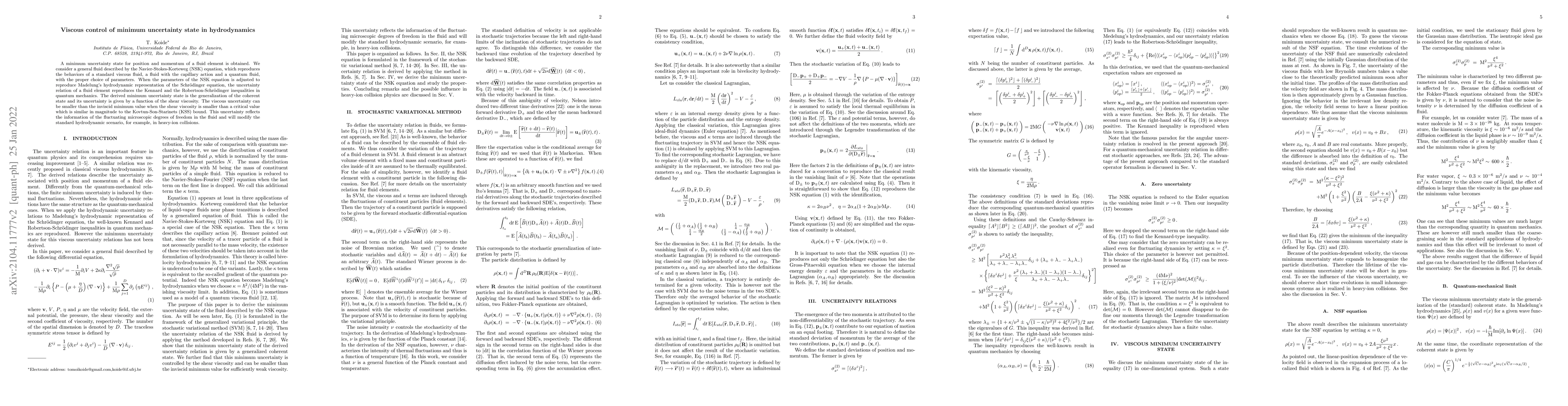 This research develops a minimum uncertainty state for fluid elements governed by the Navier-Stokes-Korteweg equation, demonstrating how it generalizes the coherent state and incorporates shear viscosity effects. The derived state can yield lower uncertainty than inviscid scenarios, impacting hydrodynamic models like those used in heavy-ion collisions.