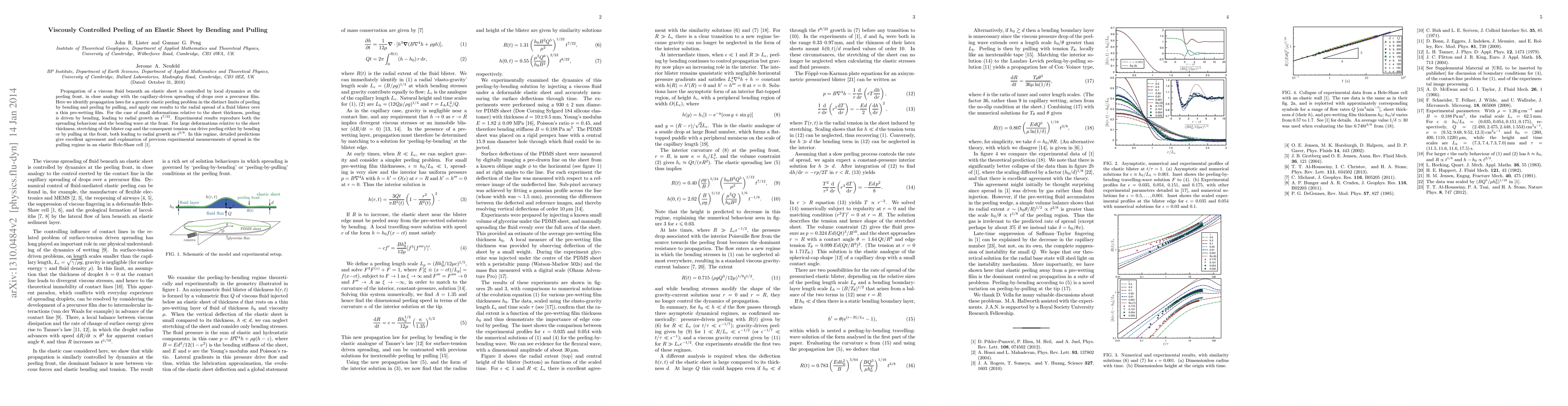 This paper investigates the dynamics of viscous fluid propagation beneath an elastic sheet during peeling, identifying propagation laws for bending and pulling regimes. Experimental results match theoretical predictions for both small and large deformations relative to the sheet thickness.