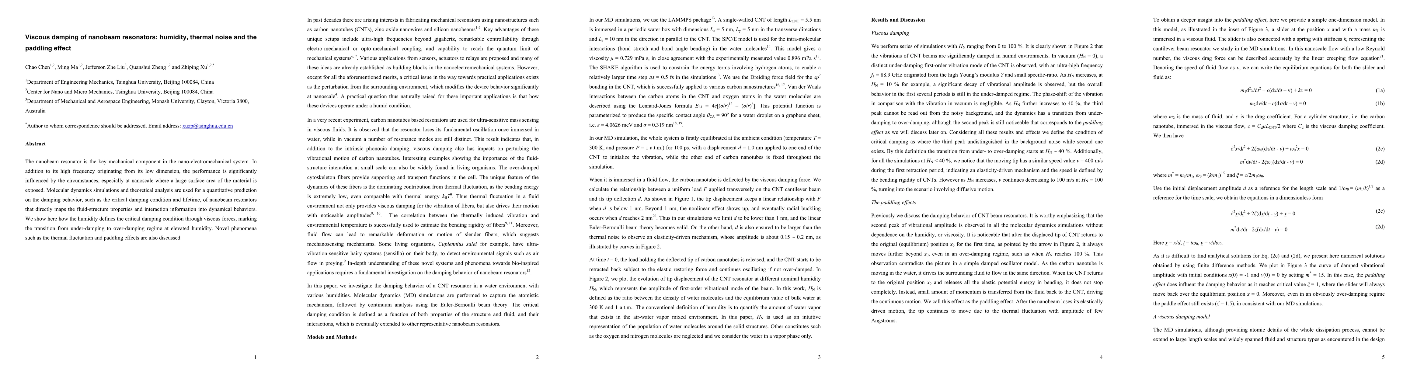 This paper investigates the damping behavior of nanobeam resonators under various environmental conditions using molecular dynamics simulations and theoretical analysis. It highlights how humidity influences the critical damping condition through viscous forces, and introduces novel phenomena like thermal fluctuation and paddling effects.