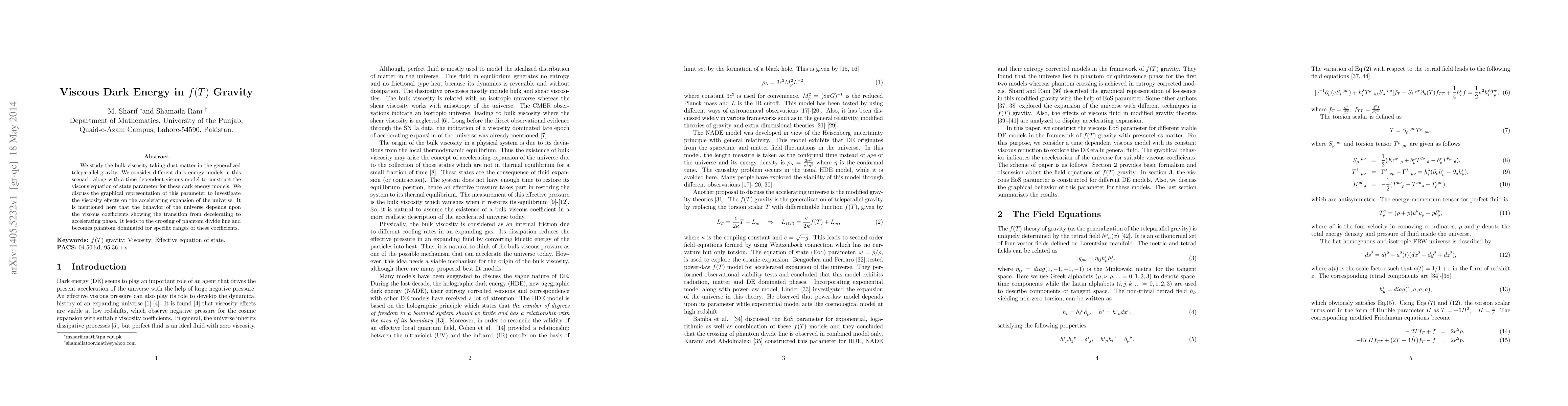 We study the bulk viscosity taking dust matter in the generalized teleparallel gravity. We consider different dark energy models in this scenario along with a time dependent viscous model to construct the viscous equation of state parameter for these dark energy models. We discuss the graphical representation of this parameter to investigate the viscosity effects on the accelerating expansion of the universe. It is mentioned here that the behavior of the universe depends upon the viscous coefficients showing the transition from decelerating to accelerating phase. It leads to the crossing of phantom divide line and becomes phantom dominated for specific ranges of these coefficients.