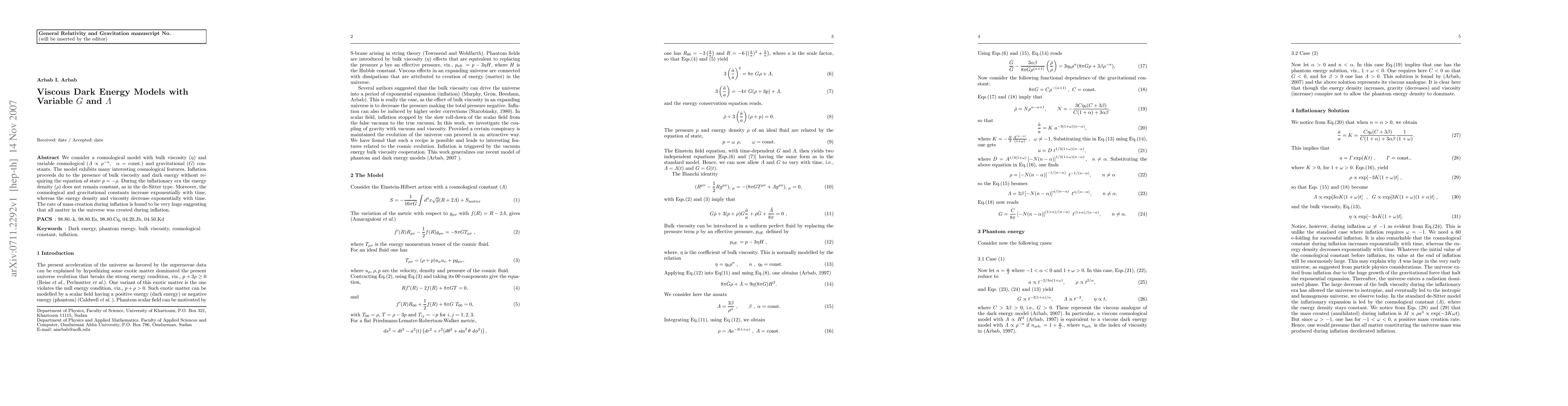 This paper explores a cosmological model with bulk viscosity, variable cosmological and gravitational constants, showing that inflation can occur without the need for the equation of state $p=-\rho$. The model suggests that all matter in the universe was created during inflation, with energy density and viscosity decreasing exponentially over time.