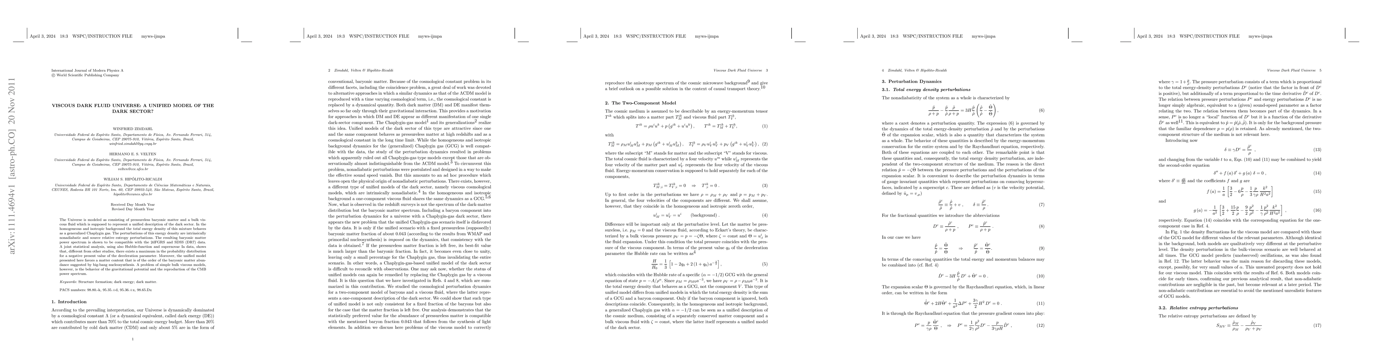 This paper proposes a unified model of the dark sector using a viscous fluid to describe dark matter and dark energy, showing compatibility with observational data. However, it faces challenges in accurately reproducing the CMB power spectrum and gravitational potential behavior.