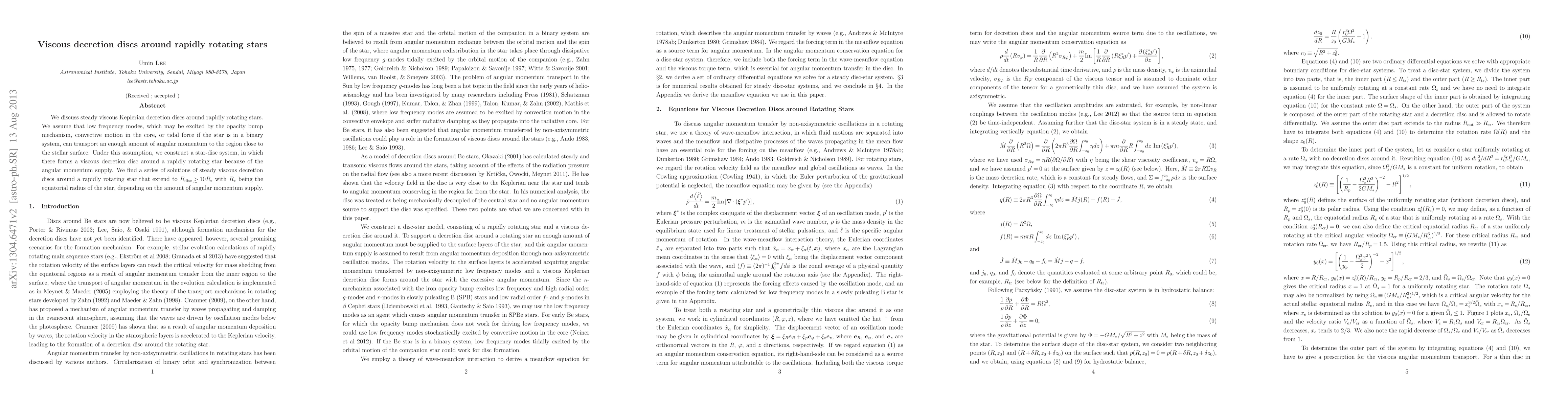 This paper explores steady viscous Keplerian decretion discs around rapidly rotating stars, driven by angular momentum transport mechanisms such as low-frequency modes. It finds solutions for discs extending to $R_{\rm disc}\gtsim~10R_*$, depending on the angular momentum supply.
