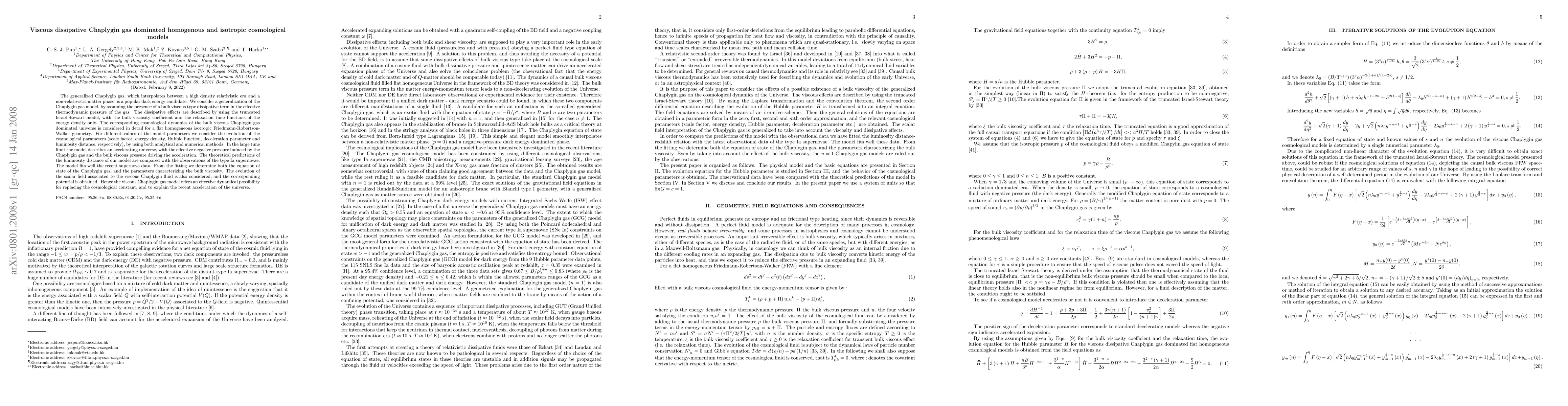 This paper explores a generalized Chaplygin gas model with bulk viscous dissipation in a flat, homogeneous, and isotropic universe. The model's cosmological dynamics are analyzed, showing it can explain the universe's recent acceleration, fitting well with type Ia supernovae observations and determining the Chaplygin gas's equation of state and bulk viscosity parameters.