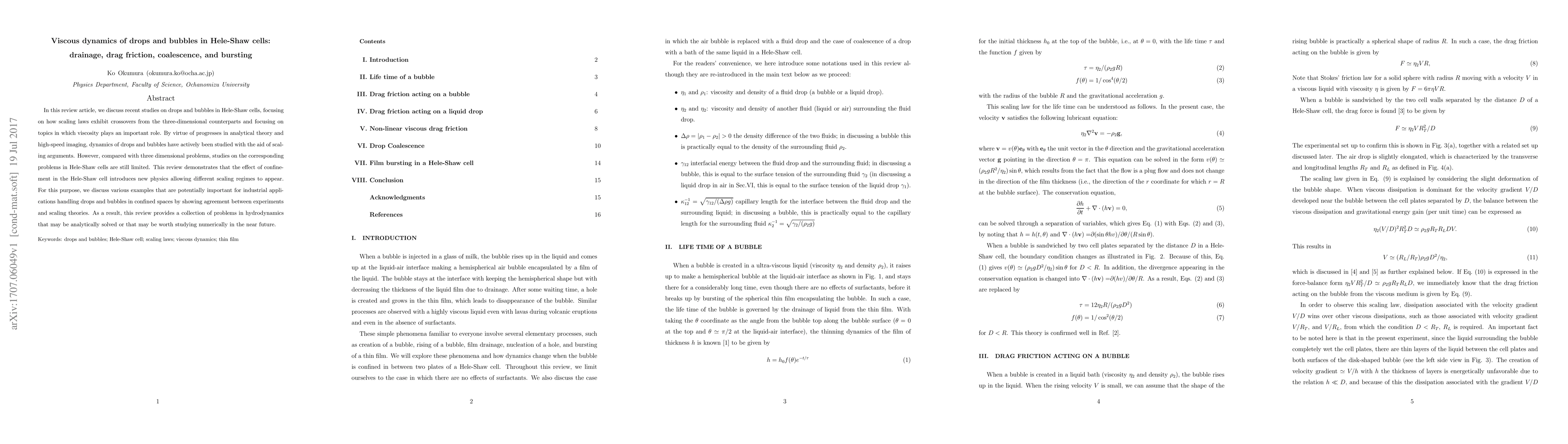 This review examines recent studies on the dynamics of drops and bubbles in Hele-Shaw cells, highlighting how scaling laws differ from three-dimensional counterparts and focusing on the role of viscosity. It showcases how confinement in Hele-Shaw cells introduces new physics and scaling regimes, with implications for industrial applications.