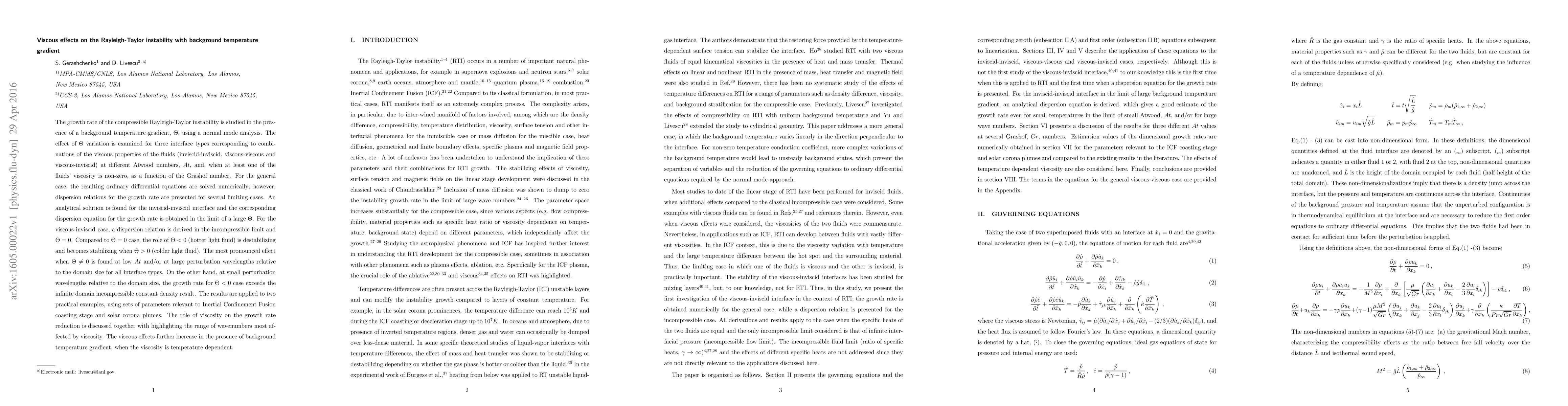 The study examines how a temperature gradient affects the growth rate of the Rayleigh-Taylor instability in fluids with varying viscosities, finding that a background temperature gradient can either destabilize or stabilize the interface depending on its value.