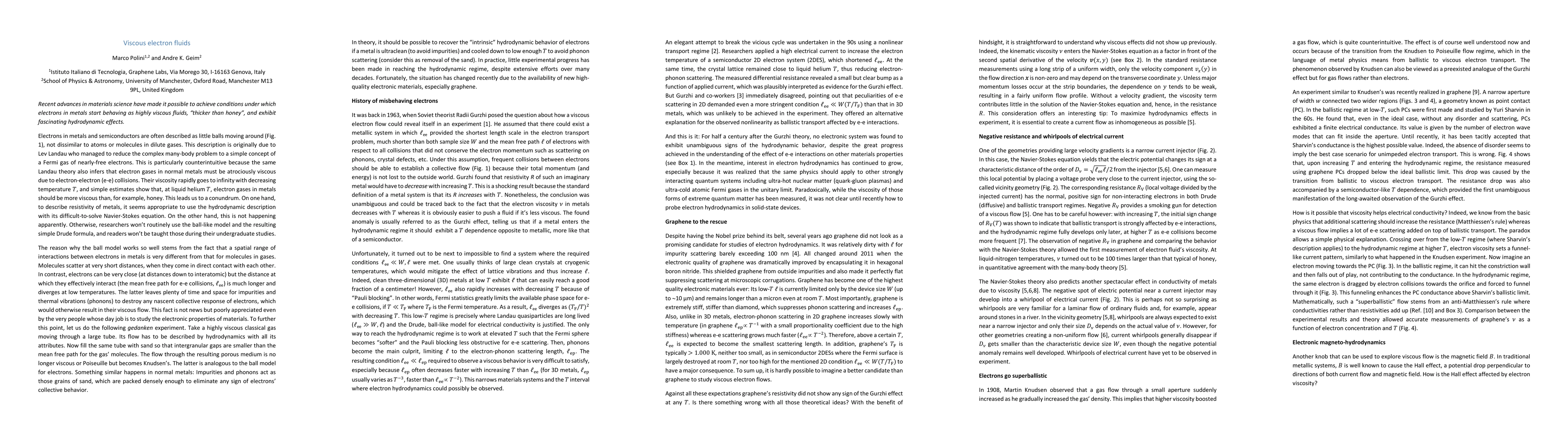 Summary: This paper reviews the emerging field of electron hydrodynamics, where advances in materials science enable electrons in metals to behave as highly viscous fluids, exhibiting unique hydrodynamic phenomena. It offers a popular introduction to this intriguing area of research.