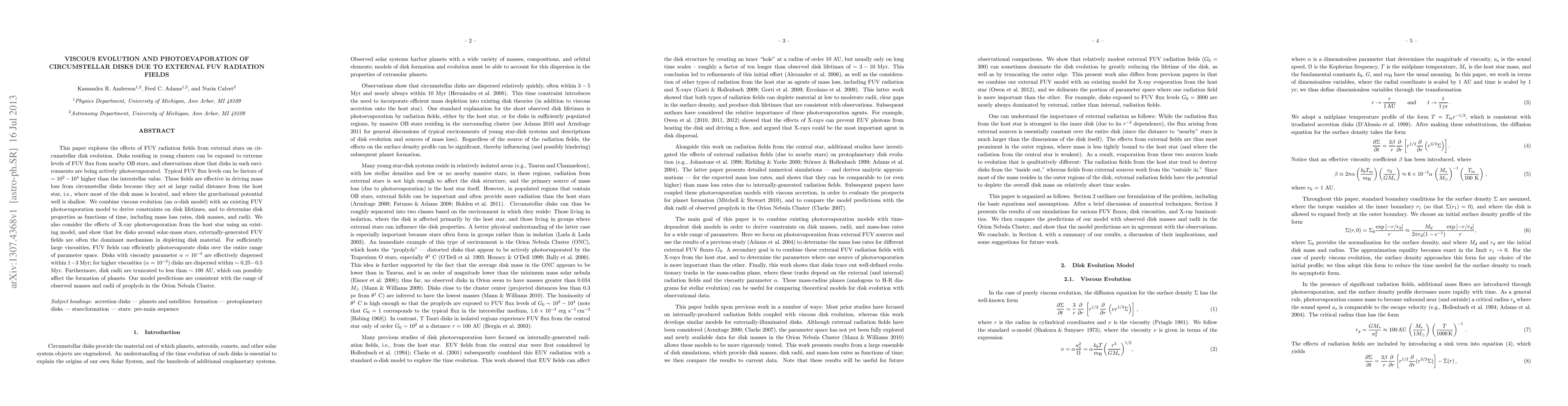 This paper investigates the impact of external far-ultraviolet (FUV) radiation from nearby stars on the evolution of circumstellar disks, showing that FUV fields can significantly photoevaporate disks, especially in young star clusters. The study combines viscous evolution with FUV photoevaporation models to predict disk lifetimes, finding that FUV radiation is often the dominant factor in disk depletion for solar-mass stars.