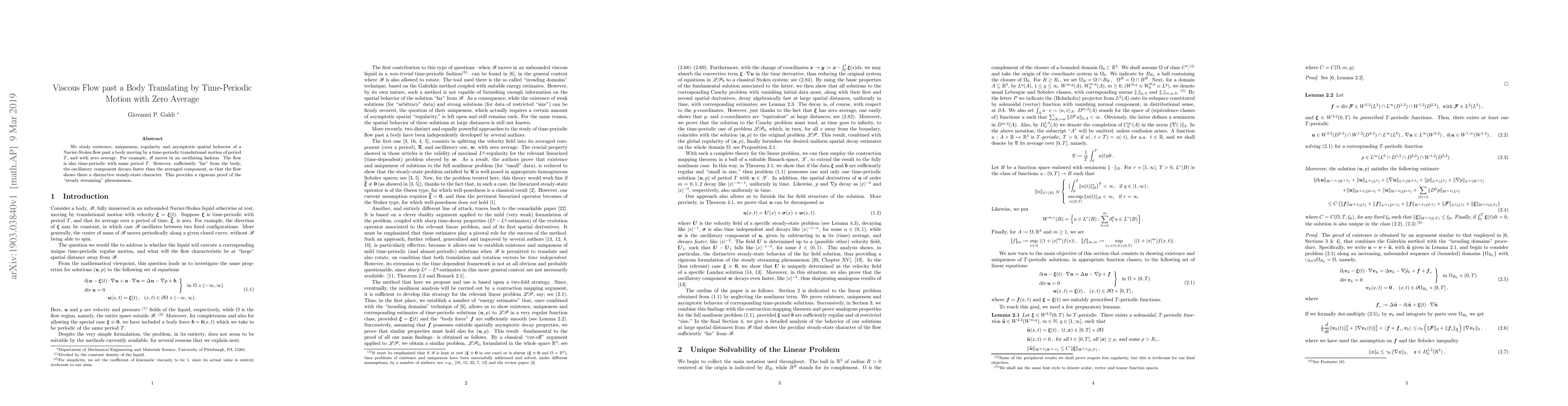 This paper investigates the Navier-Stokes flow around a body undergoing time-periodic translation with zero average, proving the existence and regularity of such flows. It demonstrates that far from the body, the oscillatory component decays, revealing a steady-state characteristic and rigorously confirming the "steady streaming" phenomenon.