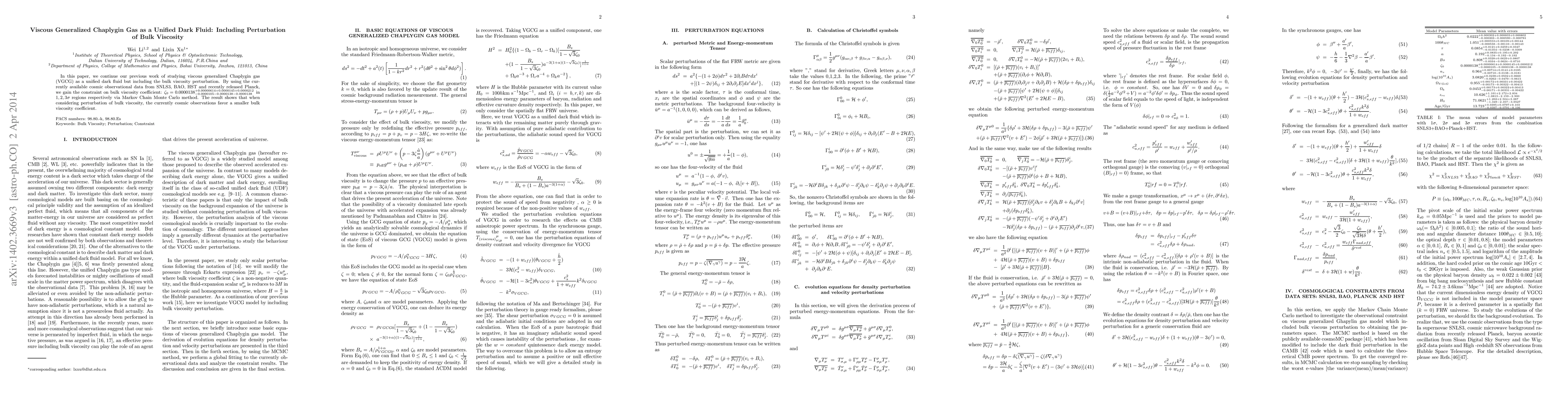 This paper explores the viscous generalized Chaplygin gas (VGCG) as a unified dark fluid model, incorporating bulk viscosity perturbations. Using observational data from SNLS3, BAO, HST, and Planck, the study constrains the bulk viscosity coefficient to $\zeta_0=0.0000138$ with uncertainties, indicating that cosmic observations favor a smaller bulk viscosity coefficient when perturbations are considered.