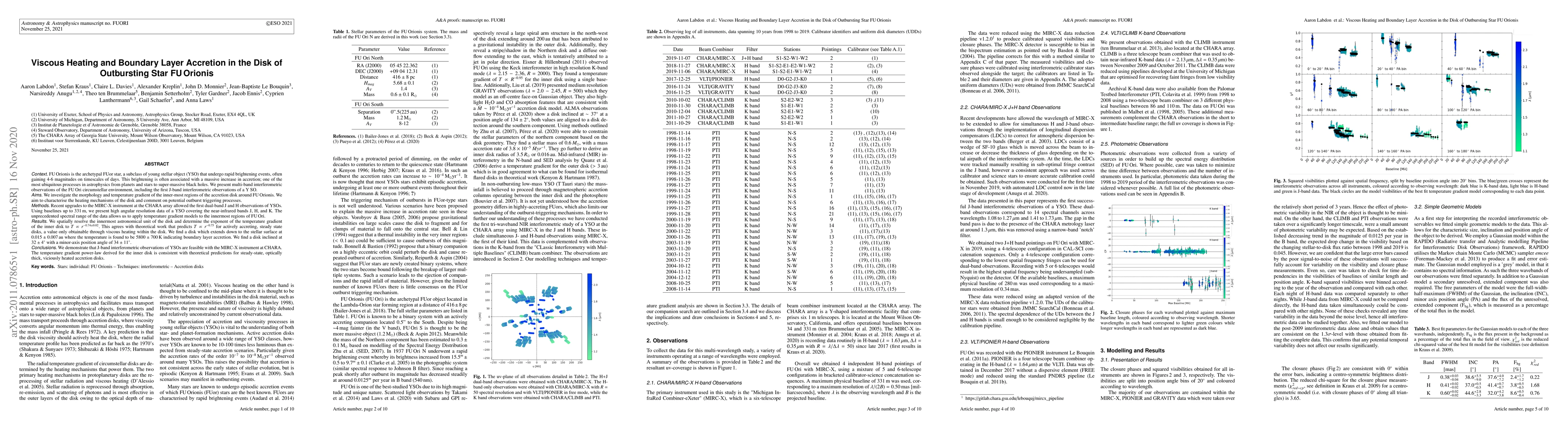 Context. FU Orionis is the archetypal FUor star, a subclass of young stellar object (YSO) that undergo rapid brightening events, often gaining 4-6 magnitudes on timescales of days. This brightening is often associated with a massive increase in accretion; one of the most ubiquitous processes in astrophysics from planets and stars to super-massive black holes. We present multi-band interferometric observations of the FU Ori circumstellar environment, including the first J-band interferometric observations of a YSO. Aims. We investigate the morphology and temperature gradient of the inner-most regions of the accretion disk around FU Orionis. We aim to characterise the heating mechanisms of the disk and comment on potential outburst triggering processes. Methods. Recent upgrades to the MIRC-X instrument at the CHARA array allowed the first dual-band J and H observations of YSOs.Using baselines up to 331 m, we present high angular resolution data of a YSO covering the near-infrared bands J, H, and K. The unprecedented spectral range of the data allows us to apply temperature gradient models to the innermost regions of FU Ori. Results. We spatially resolve the innermost astronomical unit of the disk and determine the exponent of the temperature gradient of the inner disk to $T=r^{-0.74\pm0.02}$. This agrees with theoretical work that predicts $T = r^{-0.75}$ for actively accreting, steady state disks, a value only obtainable through viscous heating within the disk. We find a disk which extends down to the stellar surface at $0.015\pm0.007$ au where the temperature is found to be $5800\pm700$ K indicating boundary layer accretion. We find a disk inclined at $32\pm4^\circ$ with a minor-axis position angle of $34\pm11^\circ$.