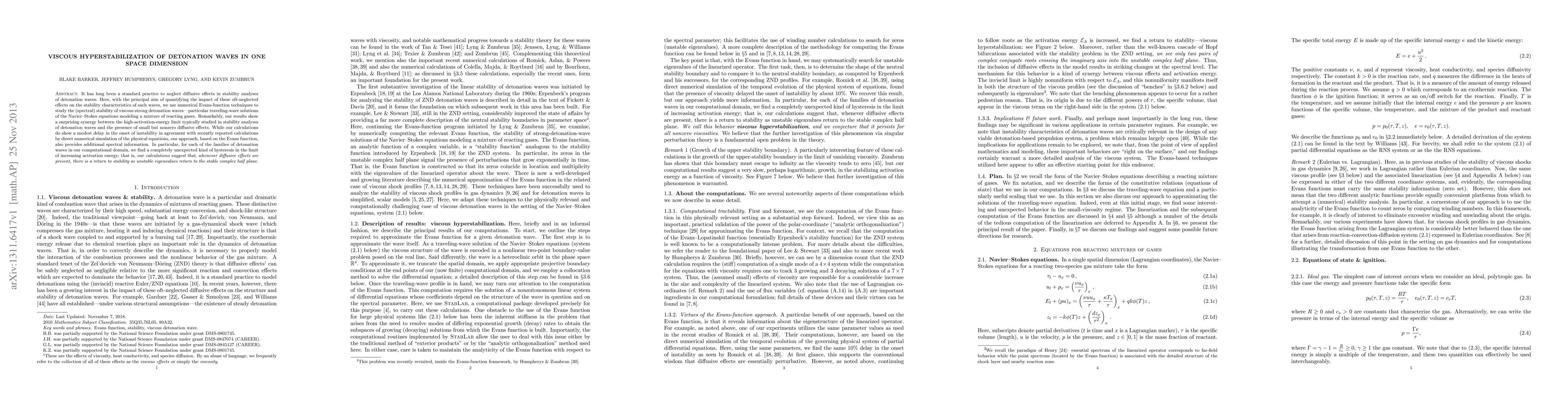 It has long been a standard practice to neglect diffusive effects in stability analyses of detonation waves. Here, with the principal aim of quantifying the impact of these oft-neglected effects on the stability characteristics of such waves, we use numerical Evans-function techniques to study the (spectral) stability of viscous strong detonation waves---particular traveling-wave solutions of the Navier-Stokes equations modeling a mixture of reacting gases. Remarkably, our results show a surprising synergy between the high-activation-energy limit typically studied in stability analyses of detonation waves and the presence of small but nonzero diffusive effects. While our calculations do show a modest delay in the onset of instability in agreement with recently reported calculations by direct numerical simulation of the physical equations, our approach, based on the Evans function, also provides additional spectral information. In particular, for each of the families of detonation waves in our computational domain, we find a completely unexpected kind of hysteresis in the limit of increasing activation energy; that is, our calculations suggest that, whenever diffusive effects are present, there is a return to stability as unstable eigenvalues return to the stable complex half plane.