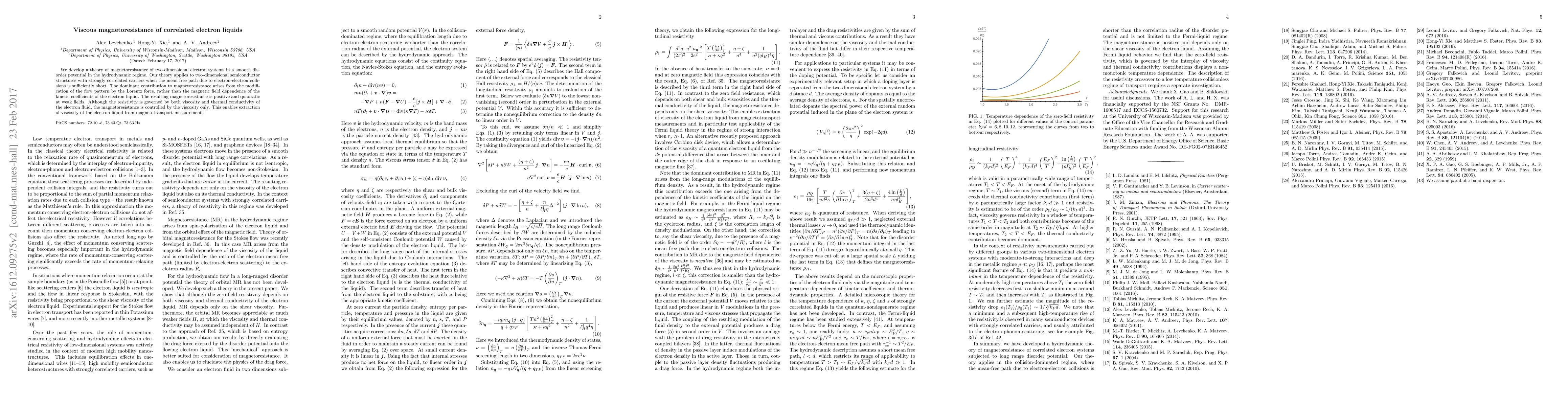 We develop a theory of magnetoresistance of two-dimensional electron systems in a smooth disorder potential in the hydrodynamic regime. Our theory applies to two-dimensional semiconductor structures with strongly correlated carriers when the mean free path due to electron-electron collisions is sufficiently short. The dominant contribution to magnetoresistance arises from the modification of the flow pattern by the Lorentz force, rather than the magnetic field dependence of the kinetic coefficients of the electron liquid. The resulting magnetoresistance is positive and quadratic at weak fields. Although the resistivity is governed by both viscosity and thermal conductivity of the electron fluid, the magnetoresistance is controlled by the viscosity only. This enables extraction of viscosity of the electron liquid from magnetotransport measurements.