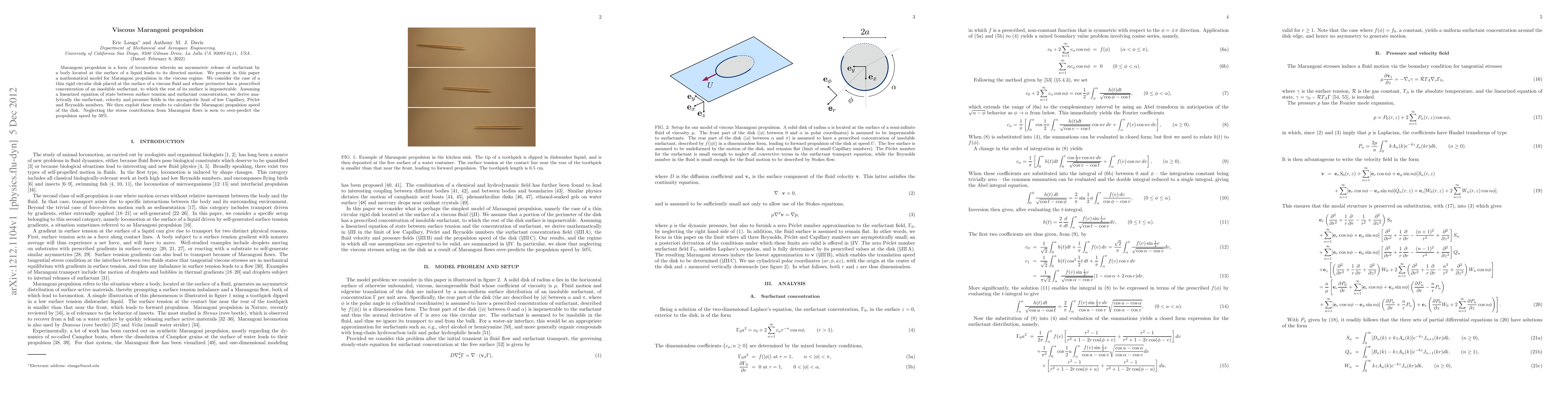Researchers developed a mathematical model for Marangoni propulsion in a viscous fluid, finding that neglecting stress contributions from Marangoni flows over-predicts the propulsion speed by 50%.