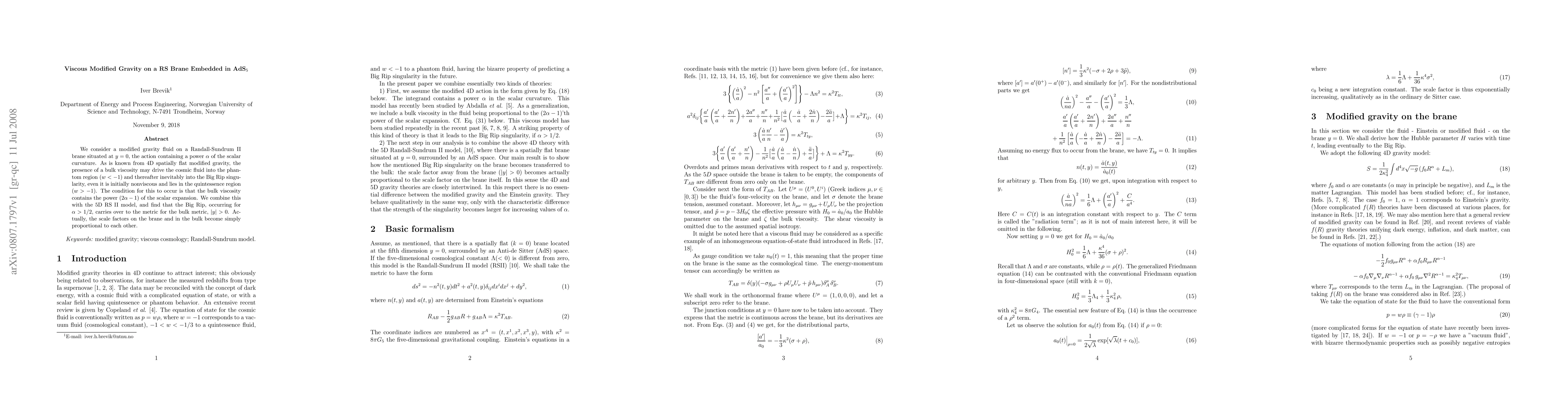 We consider a modified gravity fluid on a Randall-Sundrum II brane situated at y=0, the action containing a power \alpha of the scalar curvature. As is known from 4D spatially flat modified gravity, the presence of a bulk viscosity may drive the cosmic fluid into the phantom region (w < -1) and thereafter inevitably into the Big Rip singularity, even it is initially nonviscous and lies in the quintessence region (w > -1). The condition for this to occur is that the bulk viscosity contains the power (2\alpha-1) of the scalar expansion. We combine this with the 5D RS II model, and find that the Big Rip, occurring for \alpha > 1/2, carries over to the metric for the bulk metric, |y|>0. Actually, the scale factors on the brane and in the bulk become simply proportional to each other.