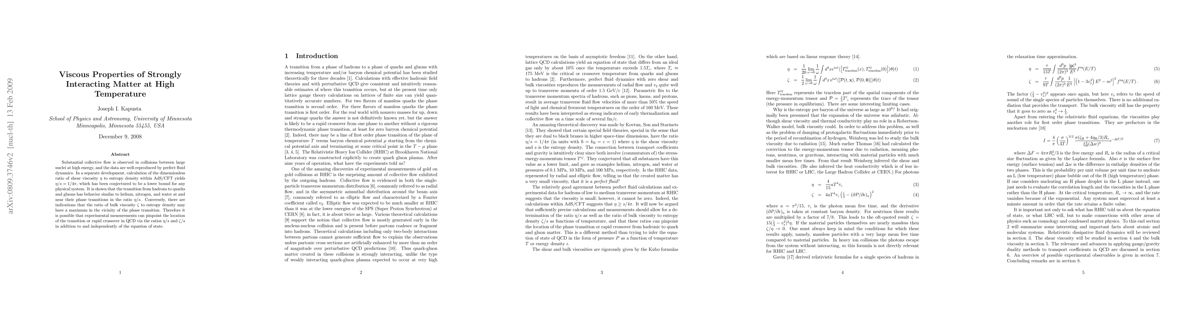 Substantial collective flow is observed in collisions between large nuclei at high energy, and the data are well-reproduced by perfect fluid dynamics. In a separate development, calculation of the dimensionless ratio of shear viscosity $\eta$ to entropy density within AdS/CFT yields $\eta/s = 1/4\pi$, which has been conjectured to be a lower bound for any physical system. It is shown that the transition from hadrons to quarks and gluons has behavior similar to helium, nitrogen, and water at and near their phase transitions in the ratio $\eta/s$. Conversely, there are indications that the ratio of bulk viscosity $\zeta$ to entropy density may have a maximum in the vicinity of the phase transition. Therefore it is possible that experimental measurements can pinpoint the location of the transition or rapid crossover in QCD via the ratios $\eta/s$ and $\zeta/s$ in addition to and independently of the equation of state.