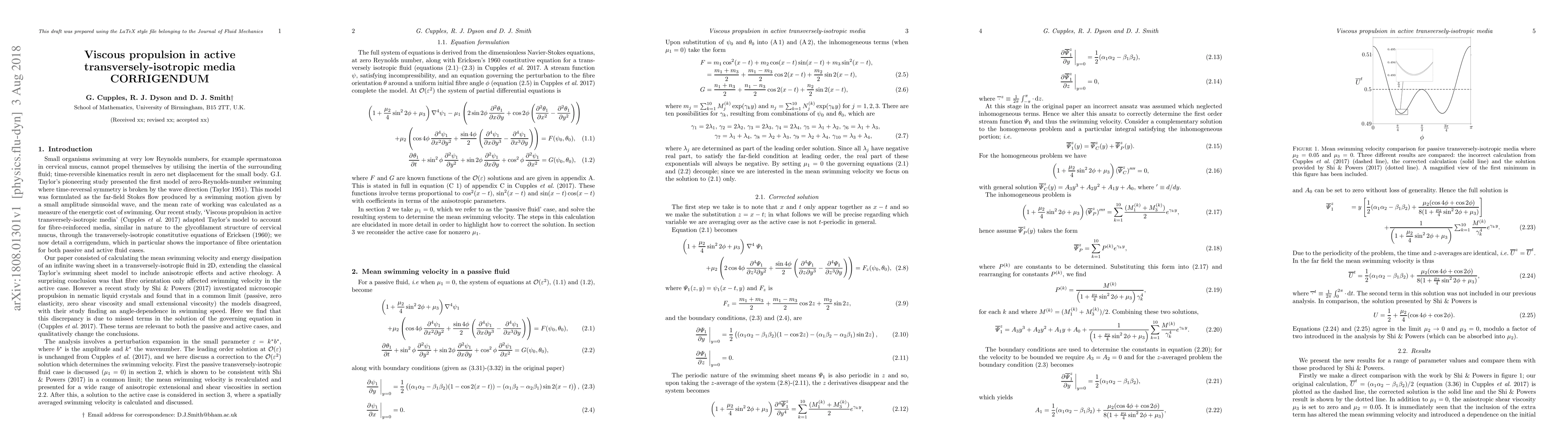 This corrigendum addresses and corrects errors in the original paper on viscous propulsion mechanisms in active transversely-isotropic media, ensuring the accuracy and reliability of the findings.