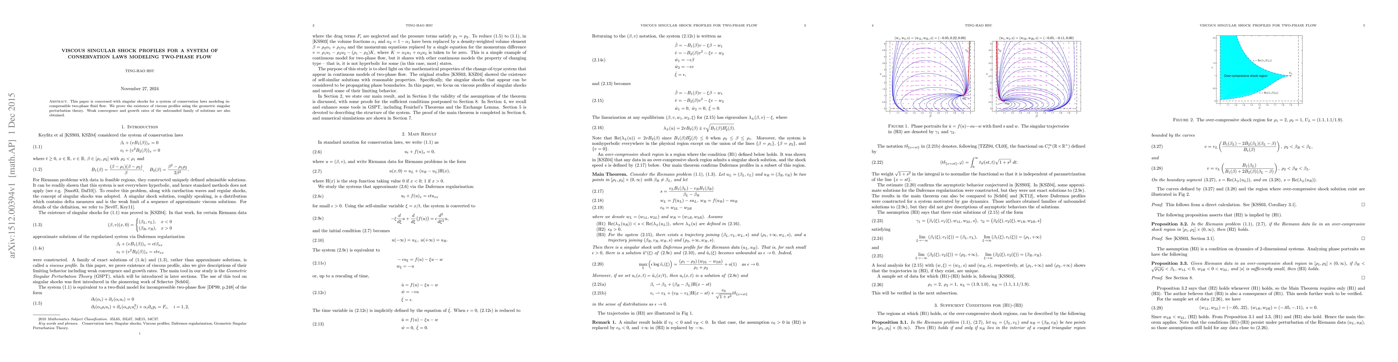 Researchers prove the existence of viscous profiles for singular shocks in two-phase fluid flow using Geometric Singular Perturbation Theory, which also reveals growth rates of unbounded solutions.