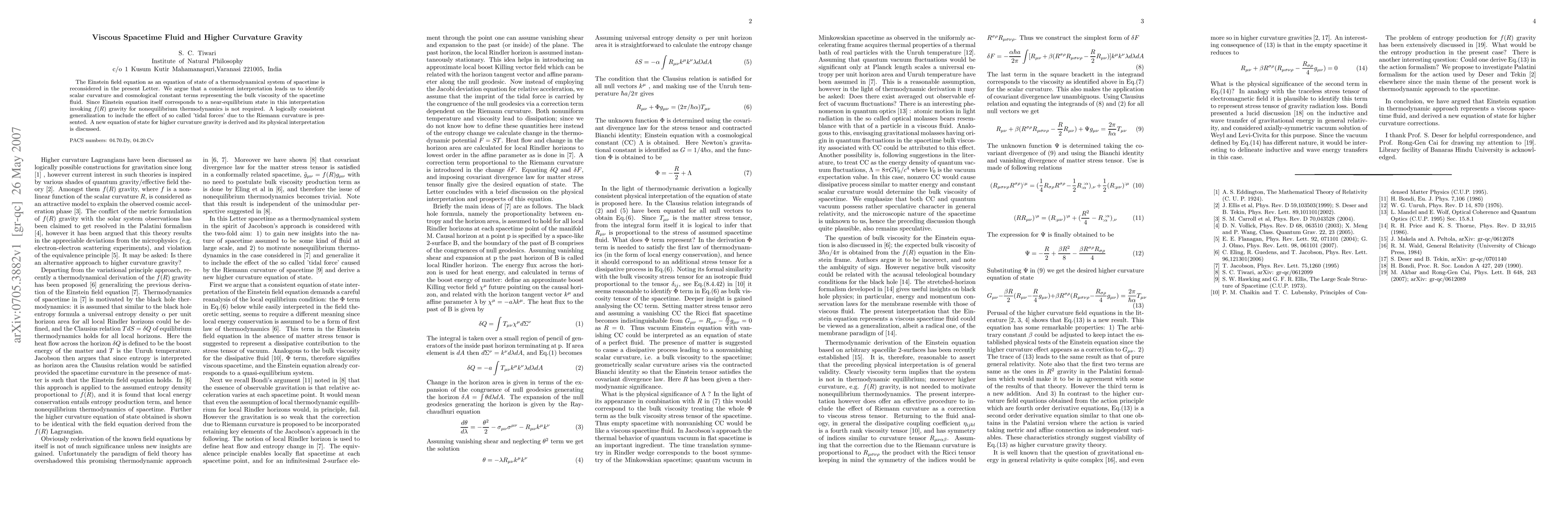 Researchers reinterpreted the Einstein field equation as a thermodynamic system of spacetime, identifying scalar curvature and cosmological constant terms that represent bulk viscosity, and derived a new equation of state for higher curvature gravity.