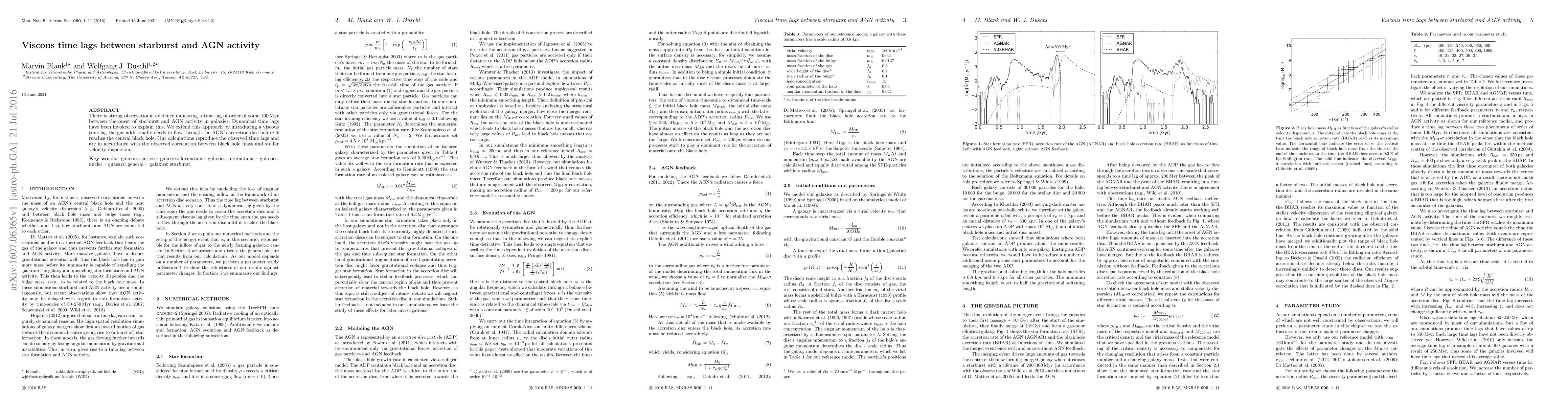 There is strong observational evidence indicating a time lag of order of some 100 Myr between the onset of starburst and AGN activity in galaxies. Dynamical time lags have been invoked to explain this. We extend this approach by introducing a viscous time lag the gas additionally needs to flow through the AGN's accretion disc before it reaches the central black hole. Our calculations reproduce the observed time lags and are in accordance with the observed correlation between black hole mass and stellar velocity dispersion.
