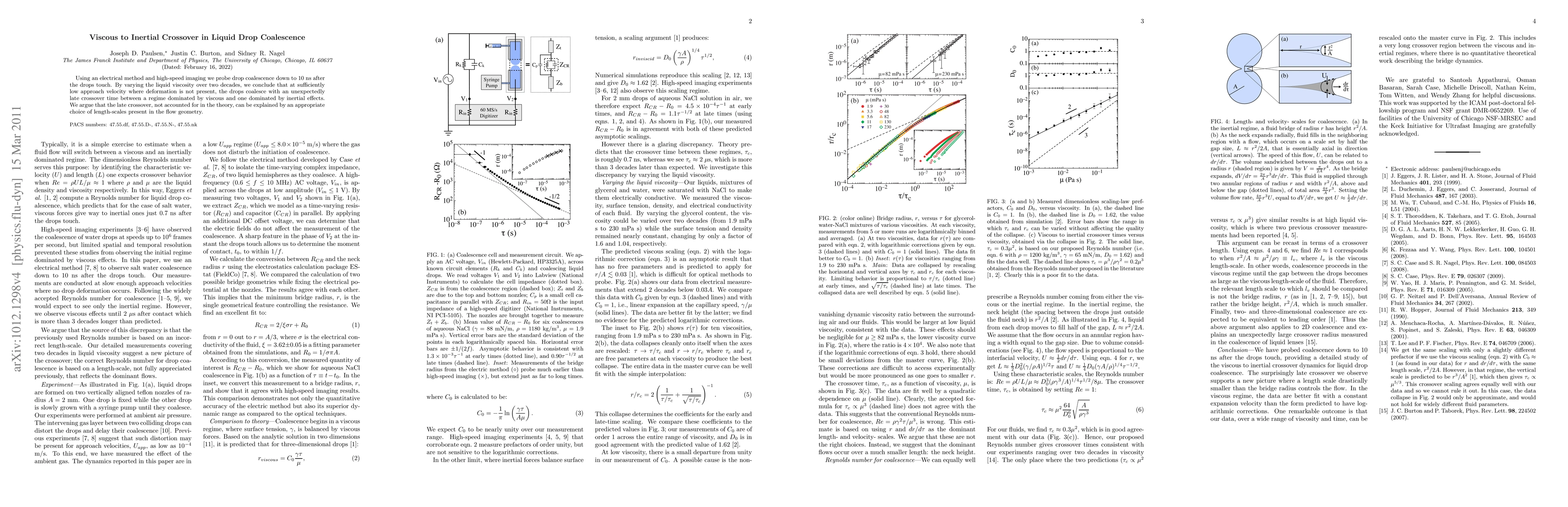 This study investigates the coalescence of liquid drops using electrical methods and high-speed imaging, revealing a late crossover time between viscous and inertial regimes at low approach velocities. The findings suggest that the overlooked crossover can be explained by considering the relevant length-scales in the flow geometry.