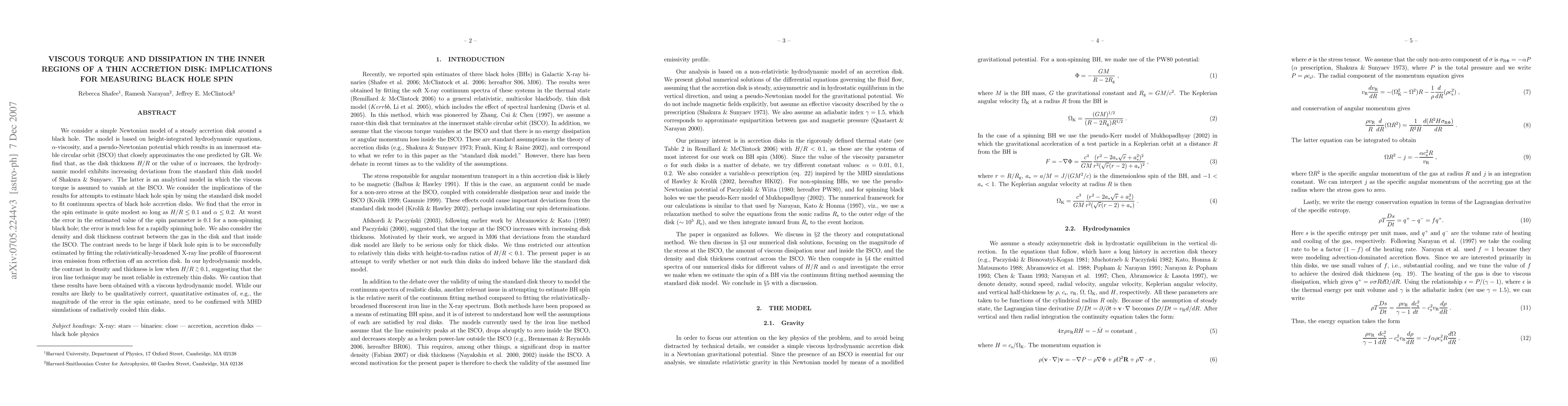 We consider a simple Newtonian model of a steady accretion disk around a black hole. The model is based on height-integrated hydrodynamic equations, alpha-viscosity, and a pseudo-Newtonian potential that results in an innermost stable circular orbit (ISCO) that closely approximates the one predicted by GR. We find that the hydrodynamic models exhibit increasing deviations from the standard disk model of Shakura & Sunyaev as disk thickness H/R or the value of alpha increases. The latter is an analytical model in which the viscous torque is assumed to vanish at the ISCO. We consider the implications of the results for attempts to estimate black hole spin by using the standard disk model to fit continuum spectra of black hole accretion disks. We find that the error in the spin estimate is quite modest so long as H/R < 0.1 and alpha < 0.2. At worst the error in the estimated value of the spin parameter is 0.1 for a non-spinning black hole; the error is much less for a rapidly spinning hole. We also consider the density and disk thickness contrast between the gas in the disk and that inside the ISCO. The contrast needs to be large if black hole spin is to be successfully estimated by fitting the relativistically-broadened X-ray line profile of fluorescent iron emission from reflection off an accretion disk. In our hydrodynamic models, the contrast in density and thickness is low when H/R>0.1, sugesting that the iron line technique may be most reliable in extemely thin disks. We caution that these results have been obtained with a viscous hydrodynamic model and need to be confirmed with MHD simulations of radiatively cooled thin disks.