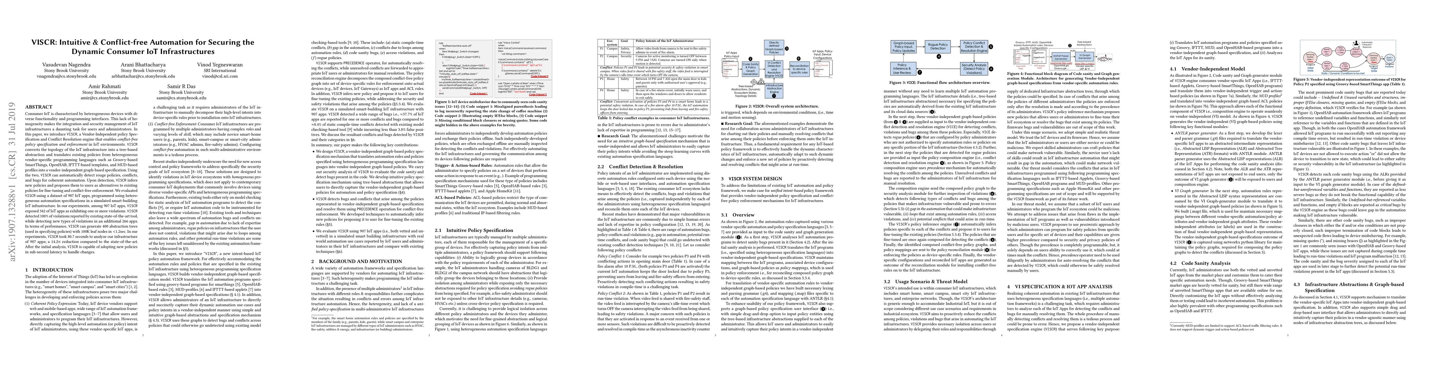 A new tool called VISCR helps secure IoT infrastructures by automatically detecting conflicts and proposing alternatives for conflict-free automation. It achieved a 14.2X reduction in analysis time compared to existing state-of-the-art tools.