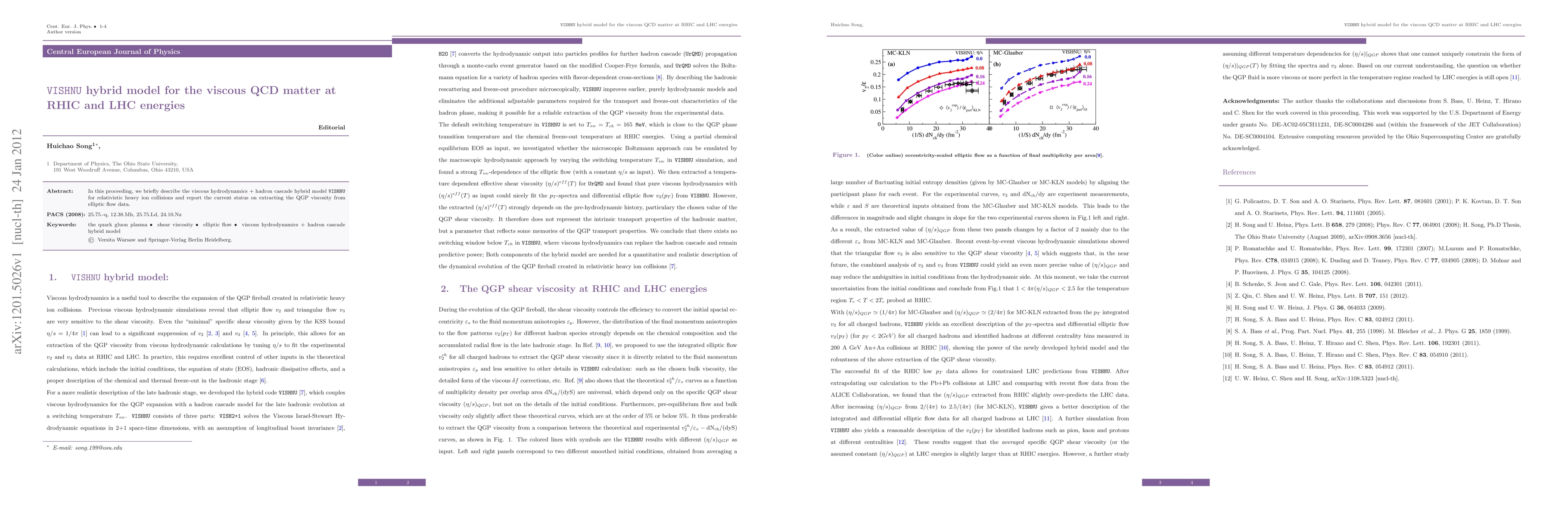 In this proceeding, we briefly describe the viscous hydrodynamics + hadron cascade hybrid model VISHNU for relativistic heavy ion collisions and report the current status on extracting the QGP viscosity from elliptic flow data.