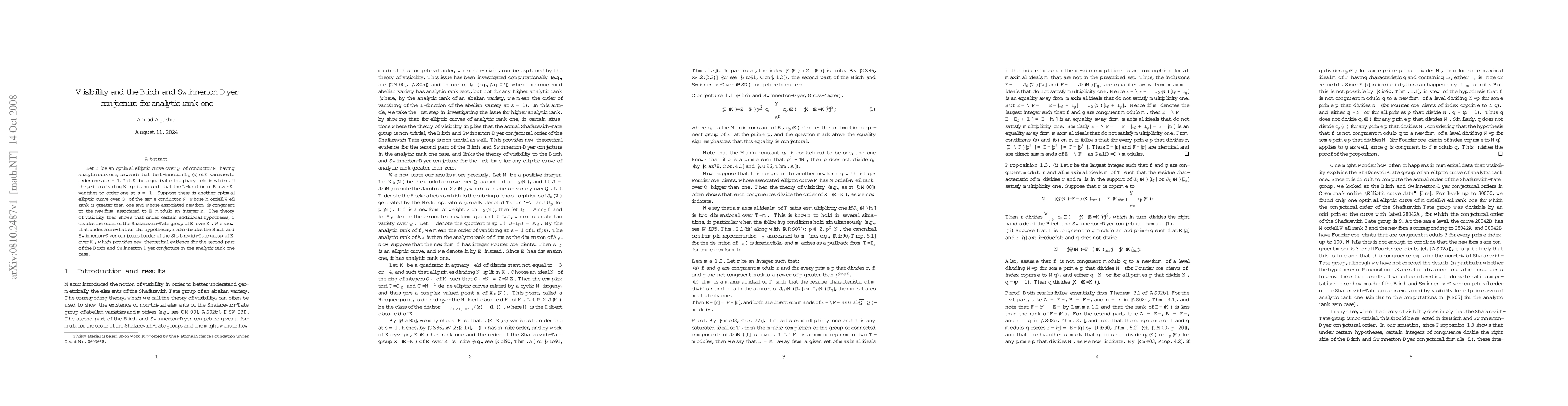 Let $E$ be an optimal elliptic curve over $\Q$ of conductor $N$ having analytic rank one, i.e., such that the $L$-function $L_E(s)$ of $E$ vanishes to order one at $s=1$. Let $K$ be a quadratic imaginary field in which all the primes dividing $N$ split and such that the $L$-function of $E$ over $K$ vanishes to order one at $s=1$. Suppose there is another optimal elliptic curve over $\Q$ of the same conductor $N$ whose Mordell-Weil rank is greater than one and whose associated newform is congruent to the newform associated to $E$ modulo an integer $r$. The theory of visibility then shows that under certain additional hypotheses, $r$ divides the order of the Shafarevich-Tate group of $E$ over $K$. We show that under somewhat similar hypotheses, $r$ divides the order of the Shafarevich-Tate group of $E$ over $K$. We show that under somewhat similar hypotheses, $r$ also divides the Birch and Swinnerton-Dyer {\em conjectural} order of the Shafarevich-Tate group of $E$ over $K$, which provides new theoretical evidence for the second part of the Birch and Swinnerton-Dyer conjecture in the analytic rank one case.