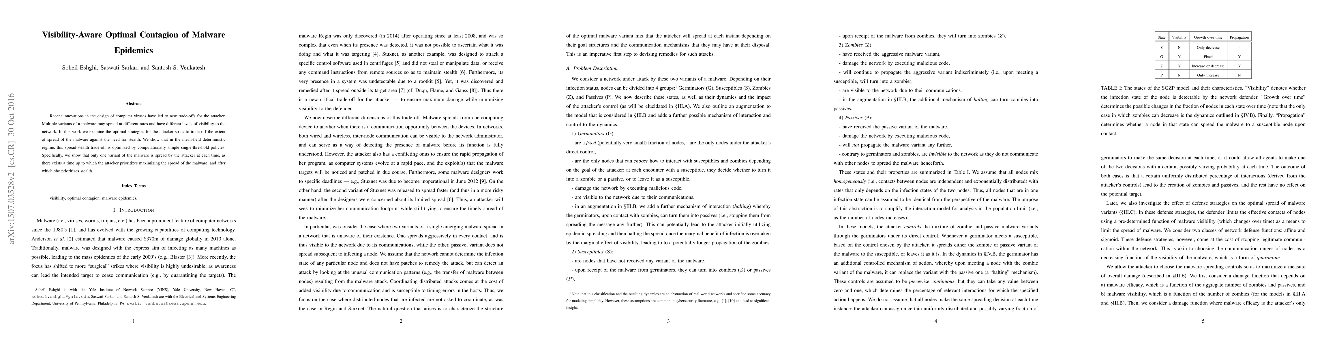 This paper explores optimal strategies for malware attackers to balance the spread of their viruses against the need for stealth. It finds that single-threshold policies are optimal, where attackers initially focus on maximizing the spread and later shift to prioritizing stealth.
