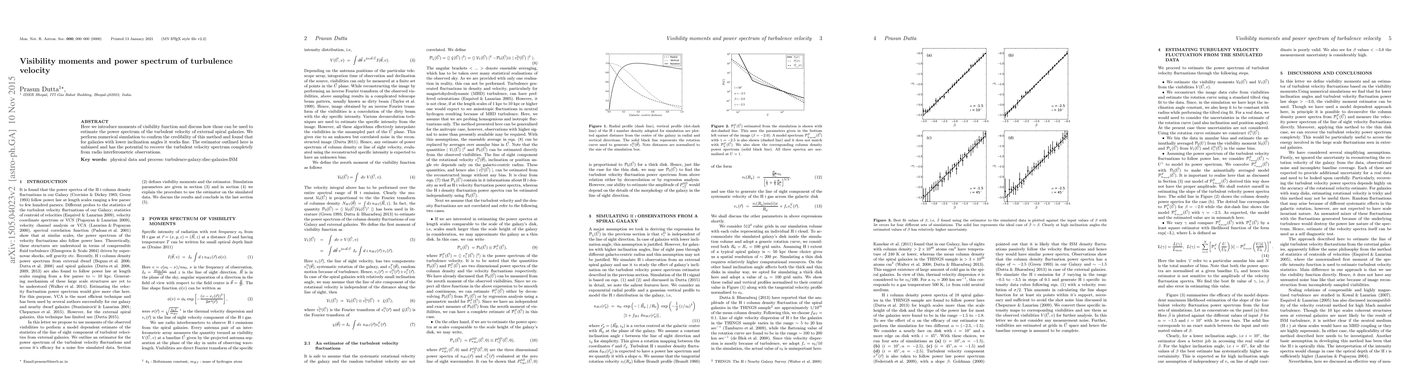 Here we introduce moments of visibility function and discuss how those can be used to estimate the power spectrum of the turbulent velocity of external spiral galaxies. We perform numerical simulation to confirm the credibility of this method and found that for galaxies with lower inclination angles it works fine. This is the only method to estimate the power spectrum of the turbulent velocity fluctuation in the ISM of the external galaxies.