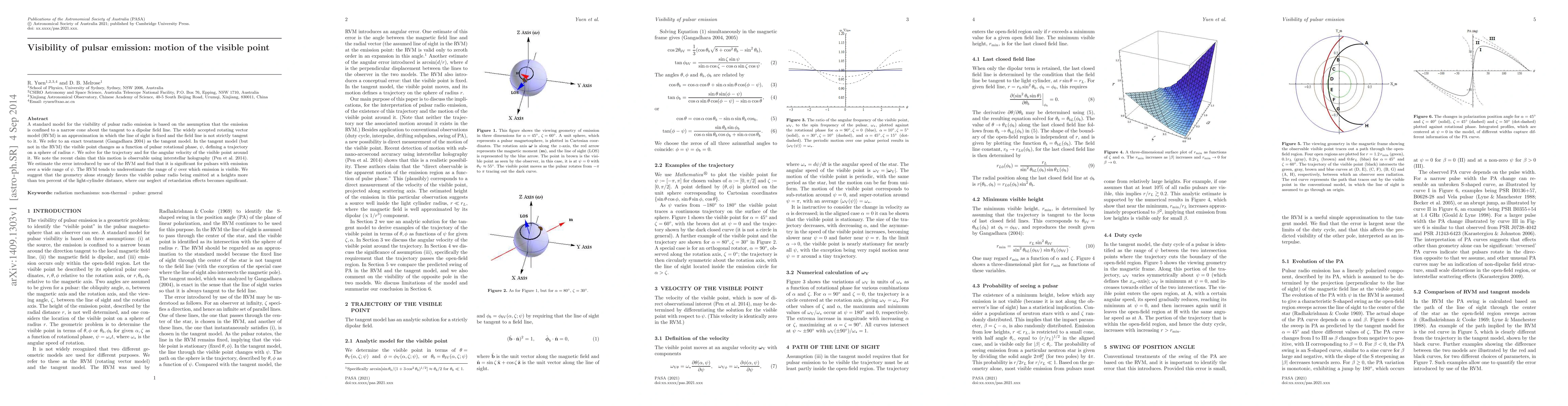A standard model for the visibility of pulsar radio emission is based on the assumption that the emission is confined to a narrow cone about the tangent to a dipolar field line. The widely accepted rotating vector model (RVM) is an approximation in which the line of sight is fixed and the field line is not strictly tangent to it. We refer to an exact treatment (Gangadhara 2004) as the tangent model. In the tangent model (but not in the RVM) the visible point changes as a function of pulsar rotational phase, $\psi$, defining a trajectory on a sphere of radius $r$. We solve for the trajectory and for the angular velocity of the visible point around it. We note the recent claim that this motion is observable using interstellar holography (Pen et al. 2014). We estimate the error introduced by use of the RVM and find that it is significant for pulsars with emission over a wide range of $\psi$. The RVM tends to underestimate the range of $\psi$ over which emission is visible. We suggest that the geometry alone strongly favors the visible pulsar radio being emitted at a heights more than ten percent of the light-cylinder distance, where our neglect of retardation effects becomes significant.